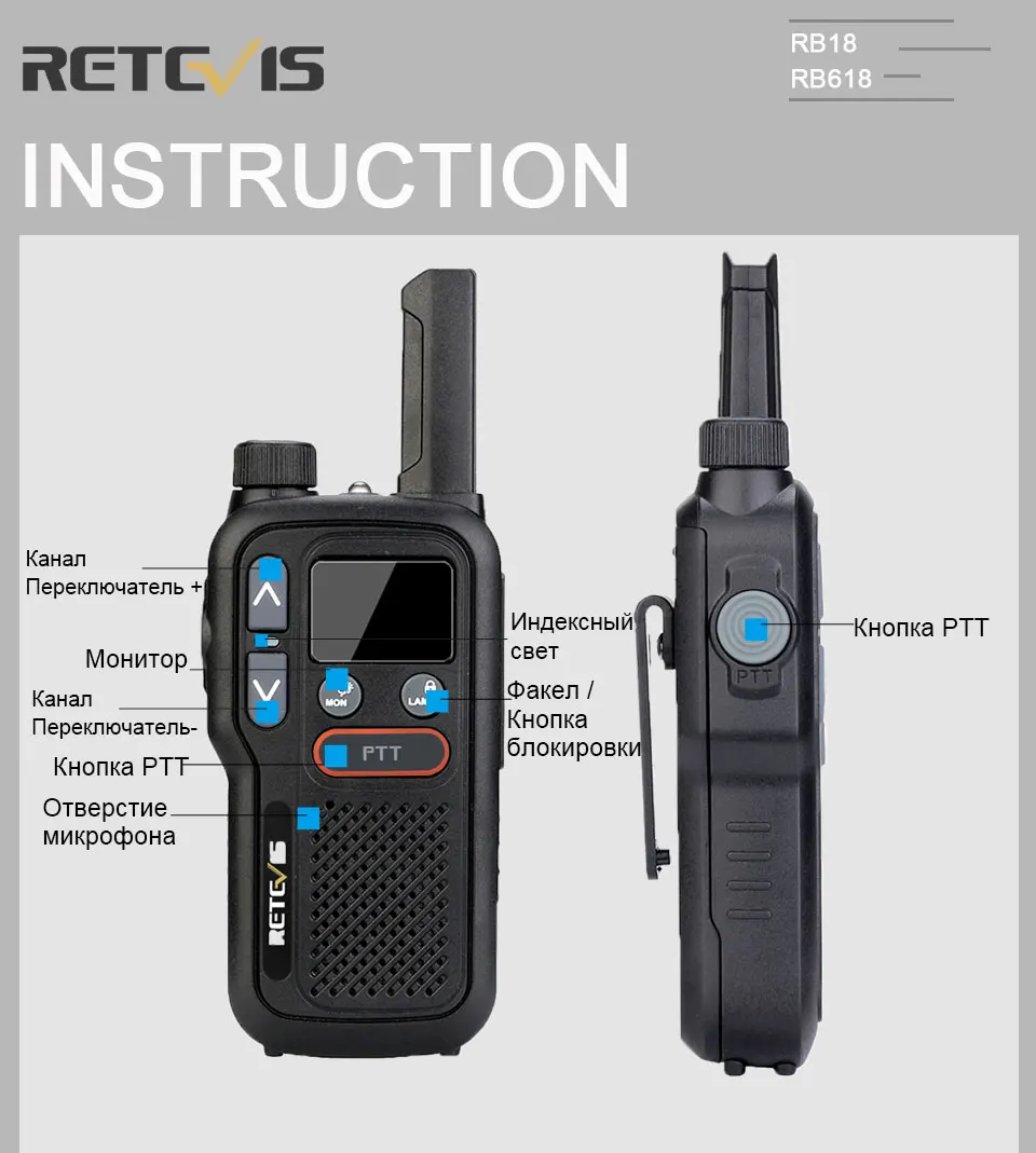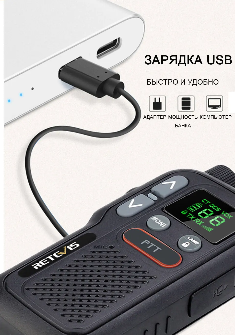 Retevis RB618 мини рация перезаряжаемая рация 1 или 2 шт. PTT PMR446 переносное двухстороннее радио для охоты