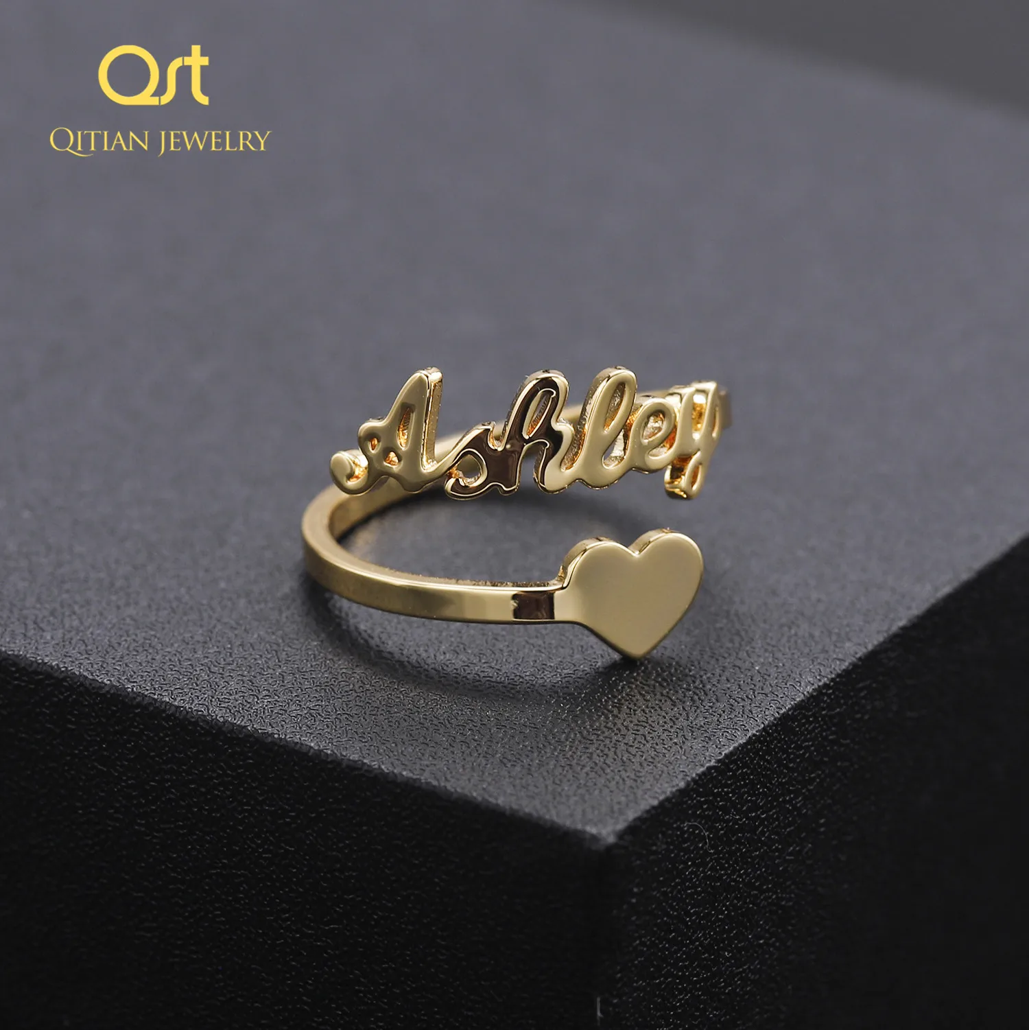 Персонализированное кольцо с наполнителем и именем сердца, Cutomized уникальное кольцо, для девушки, жены, матери, подарки, эффектные украшения, регулируемые кольца