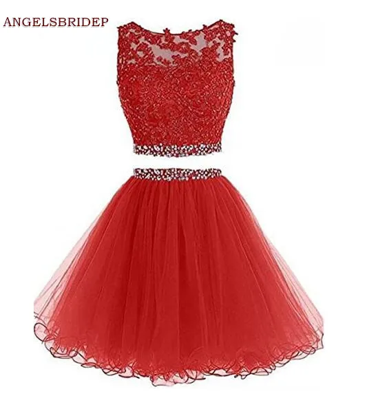 ANGELSBRIDEP, платья для встречи выпускников из двух частей, короткие платья, Формальные платья из фатина с кристаллами, Золушка, Выпускные вечерние платья, лидер продаж