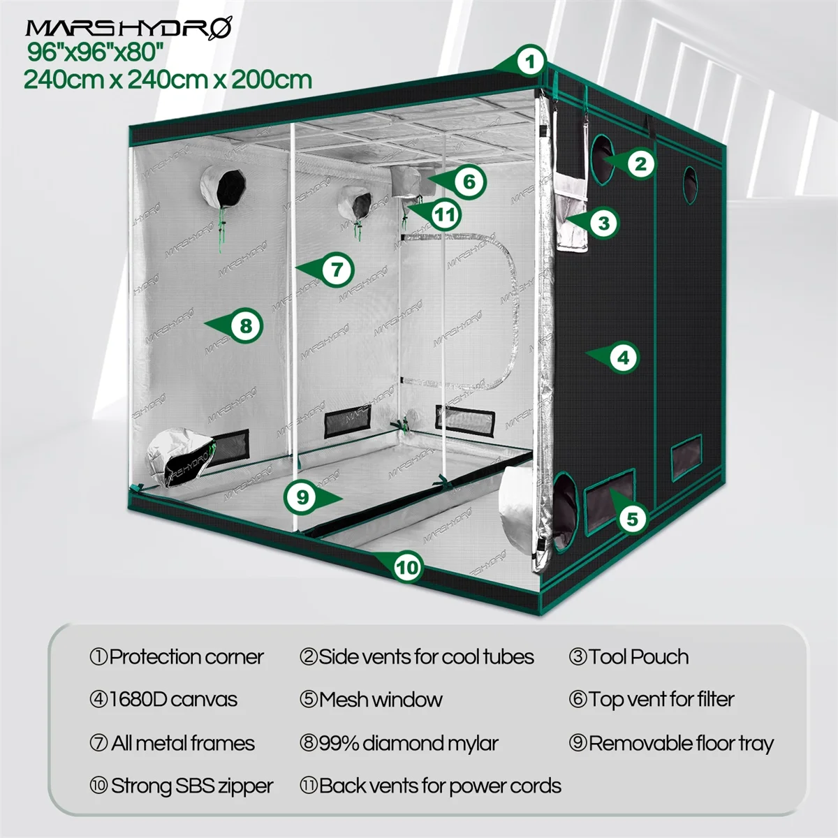 Mars Hydro 240X240X200cm Крытый светодиодный тент 1680D нетоксичных для выращивания внутри помещения система растений комнатный сад Водонепроницаемая хижина