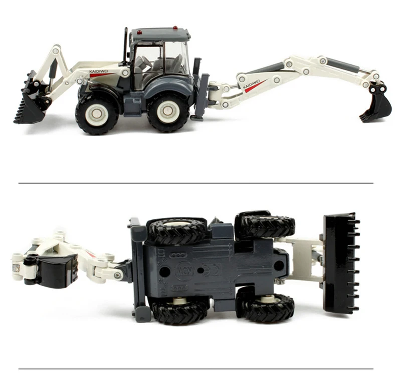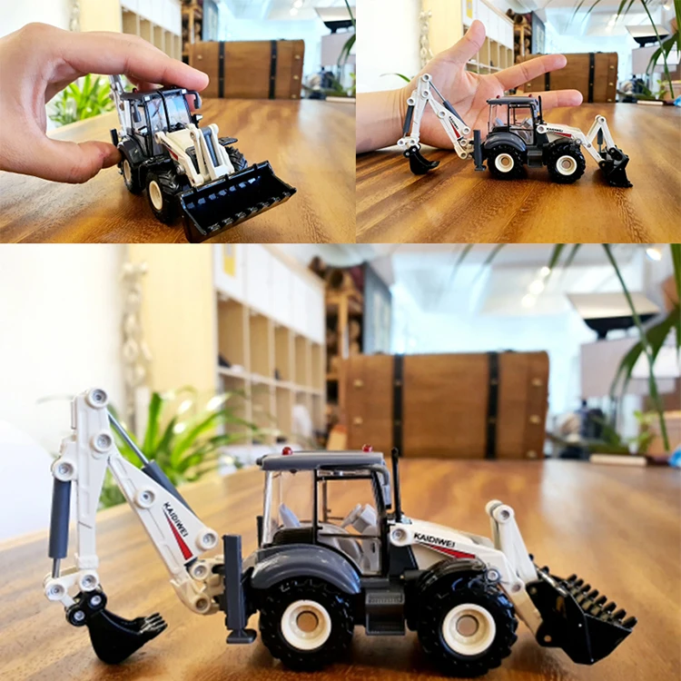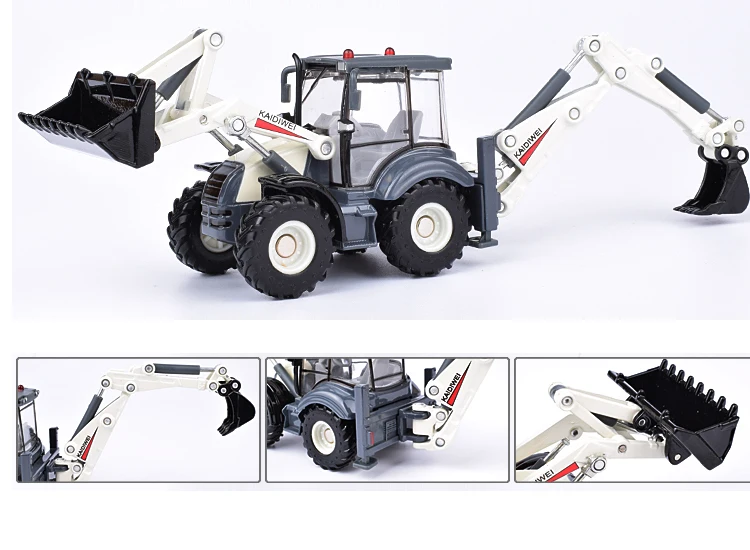 Литая модель 1:50, модель экскаватора с 4 колесами, лопаточный погрузчик, двухсторонняя модель грузовика для детей