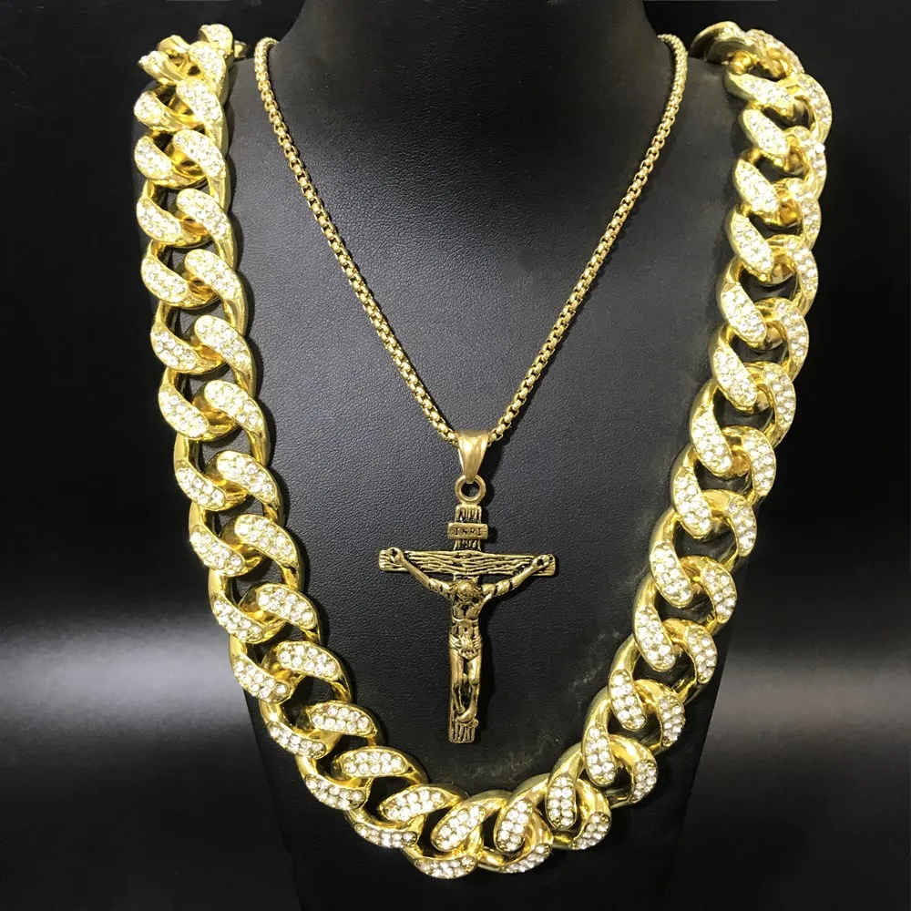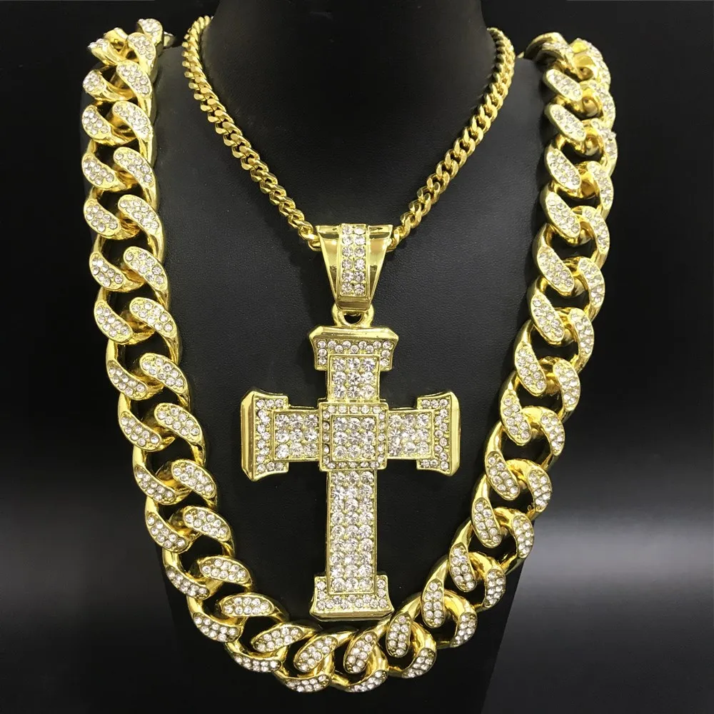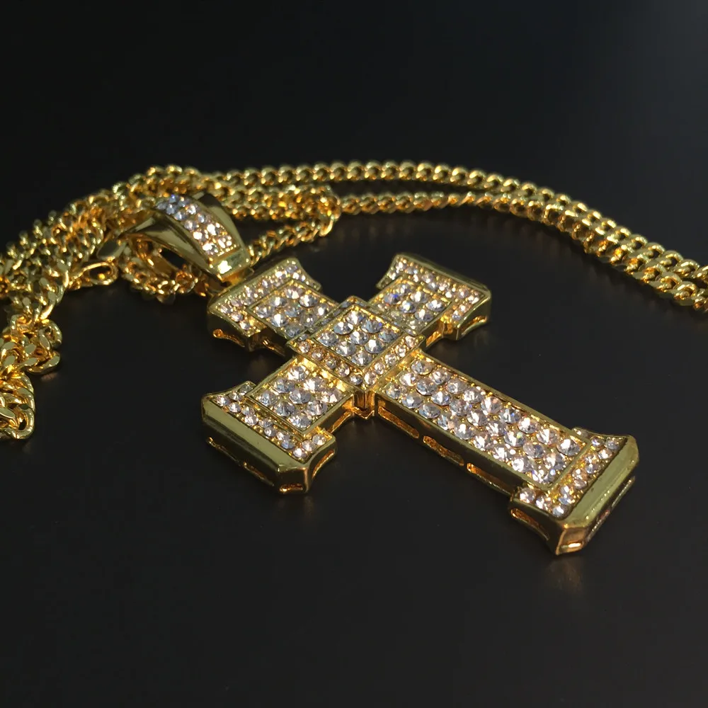 Ожерелье мужское, в стиле хип-хоп, золотого и серебряного цвета, с кулоном в виде креста Майами, 2 см