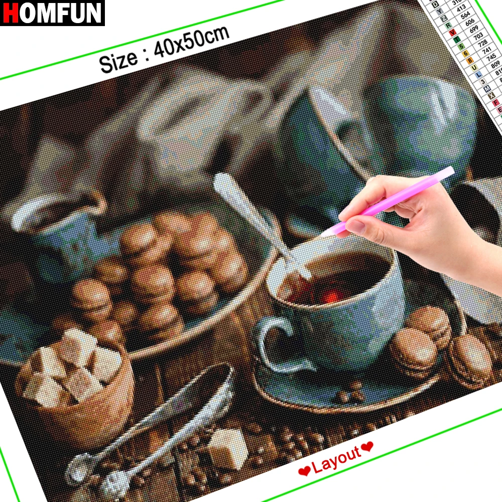 Алмазная 5D картина HOMFUN кофе печенье, сделай сам, полная Алмазная вышивка, картина Стразы для праздничных подарков