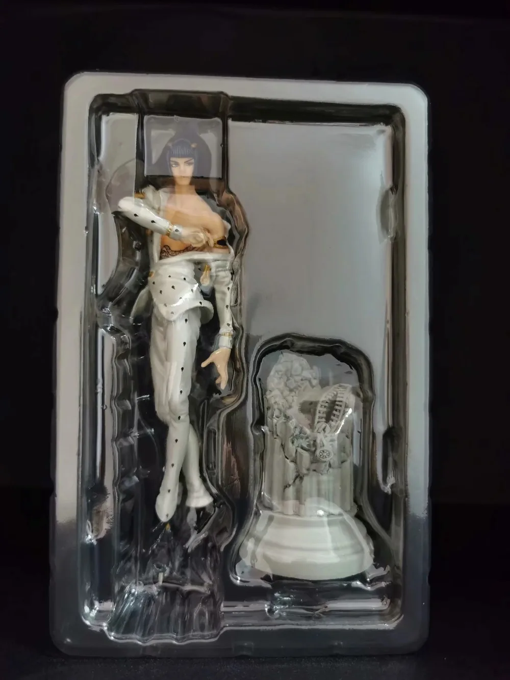 фигурка выглядит прекрасно заказывала для подарка поэтому к своему сожалению не могу вскрыть печать лица в норме, детальки и подставки – всё на месте коробка при транспортировке помялось, но это не смертельно