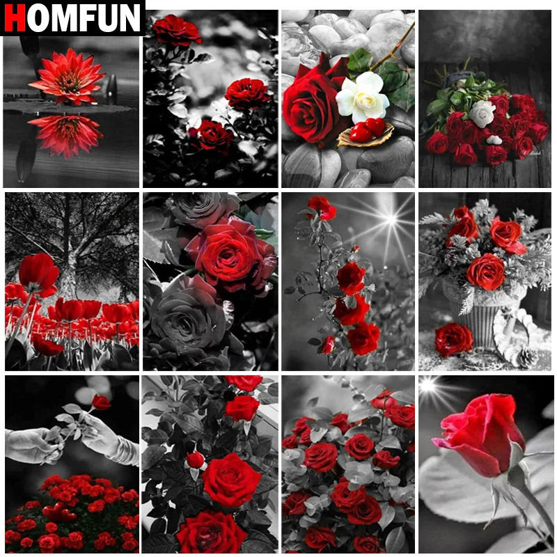 Алмазная живопись HOMFUN, картина из квадратныхкруглых страз 5D сделай сам, вышивка крестиком из страз розовый цветок, стразы