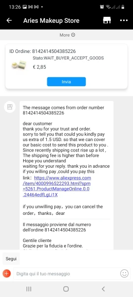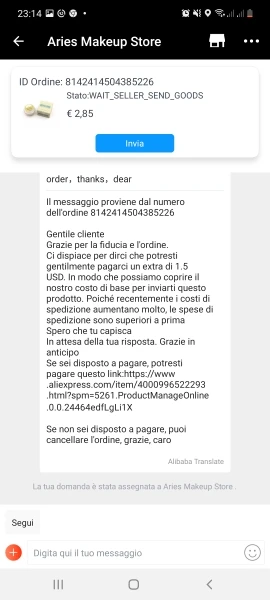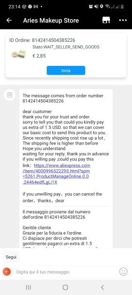 Заказ не прибыл, Поскольку продавец хотел бы заплатить больше денег, в противном случае мы не отправляем заказ, если я не платил мне, я не заплатил дополнительные деньги, я заплатил за сумму заказа + бесплатно Но мне он хотел заплатить больше денег, я не принят, я отправил доказательства того, что я заплатил, тогда он сказал, что ждать вашего заказа будет в течение 2 месяцев. Так как вы прошли 2 месяца и заказ не был доставлен, я написала, где он ответил мне, что мой заказ не был обнаружен где-либо, я открываю спор, Спор и законченный, закрыл, что мне нужно вернуть Мэй деньги, но либо деньги, которые я не соединенные, возвращены, поэтому остались без денег и продукта. Внимание, не покупайте ничего у этого продавца, Не оставайтесь без денег и товара