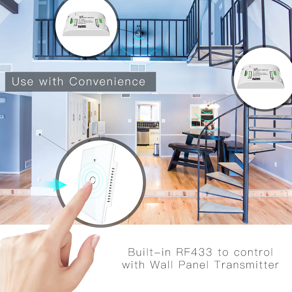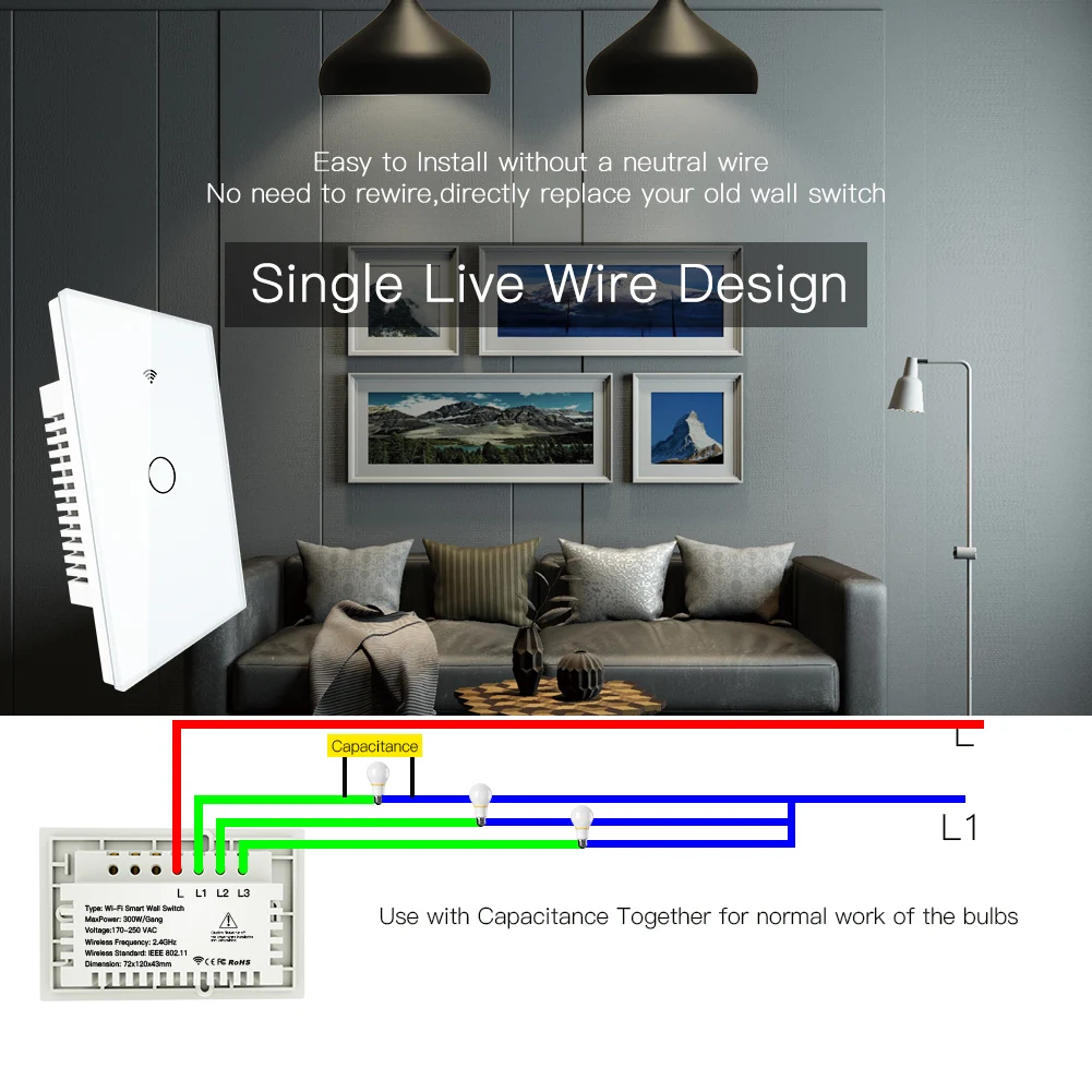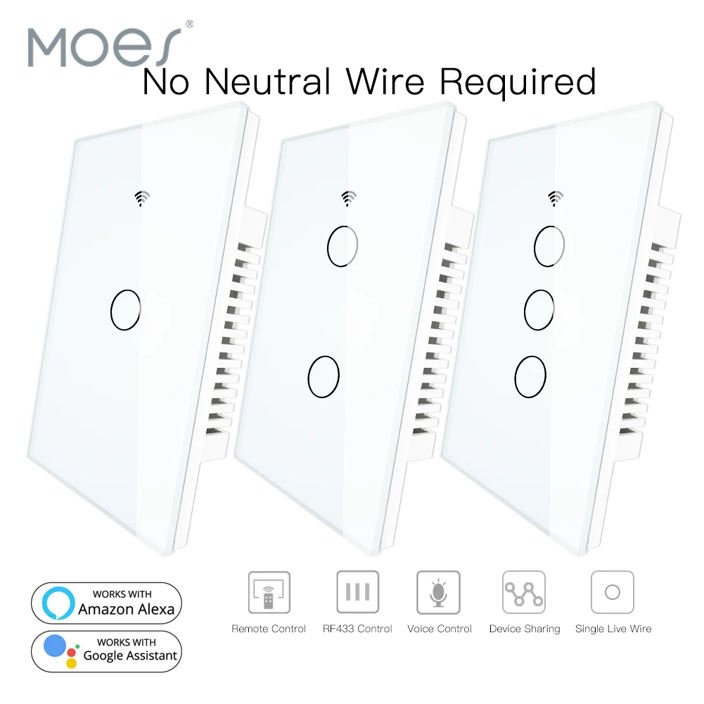 Умный настенный сенсорный выключатель RF433 с Wi-Fi, не нужен нейтральный провод, умный однопроводный настенный выключатель, работает с Alexa Google Home 170-250 В