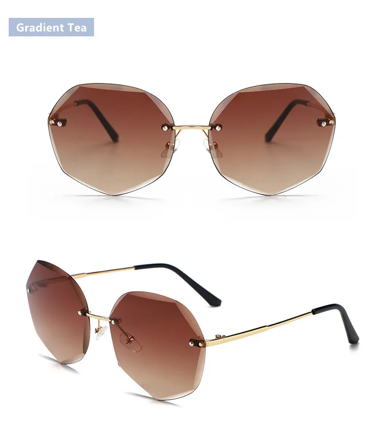 Женские солнцезащитные очки без оправы, многоугольные брендовые дизайнерские очки с градиентными линзами, очки с режущими линзами, безрамные металлические очки UV400, 2021