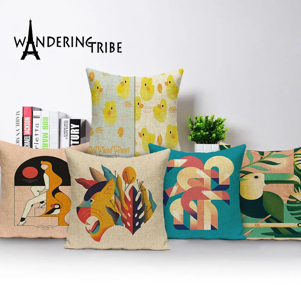 Наволочка с животными, красочные подушки, домашний декор для дивана...