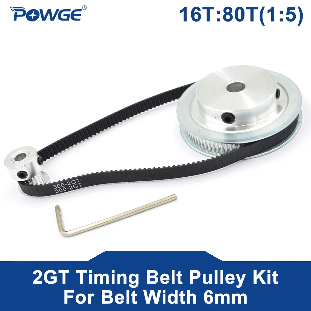 Синхронный зубчатый шкив POWGE 2M2GT, 16 зубьев, 80 зубьев, диаметр отверстия 5-20 мм, Набор 16T:80T, соотношение скорости для 300-2GT, Ширина ремня 6 мм в комплекте