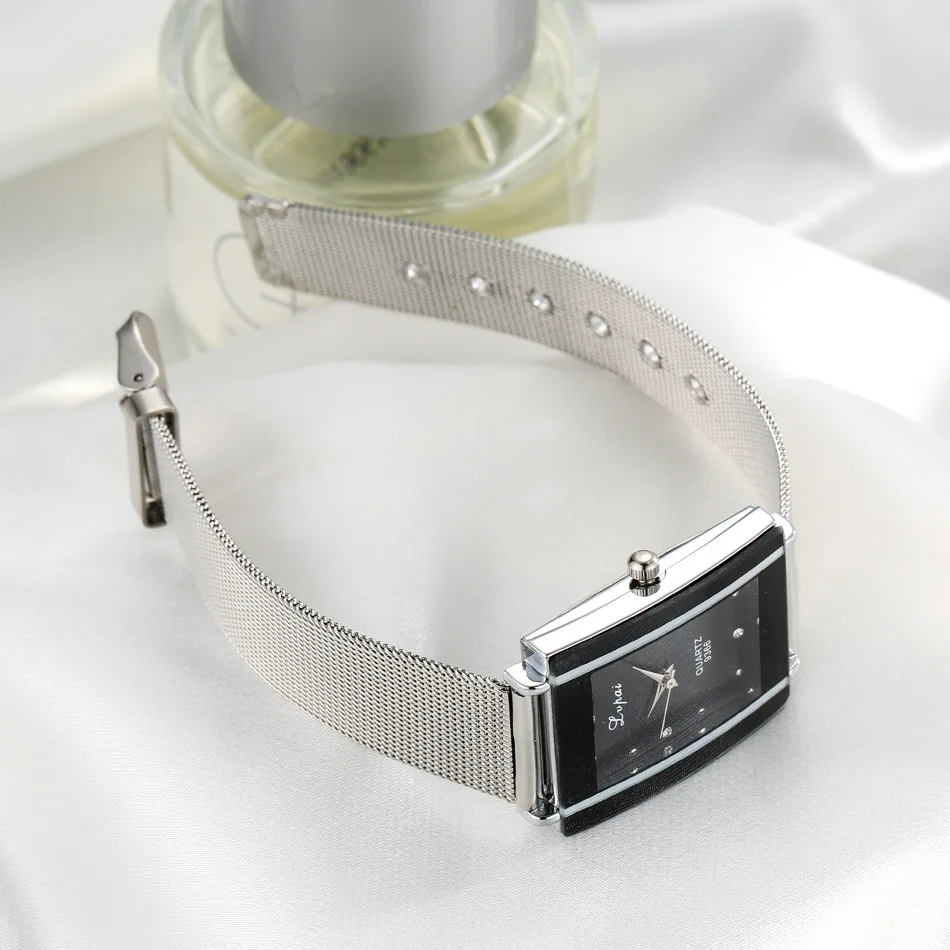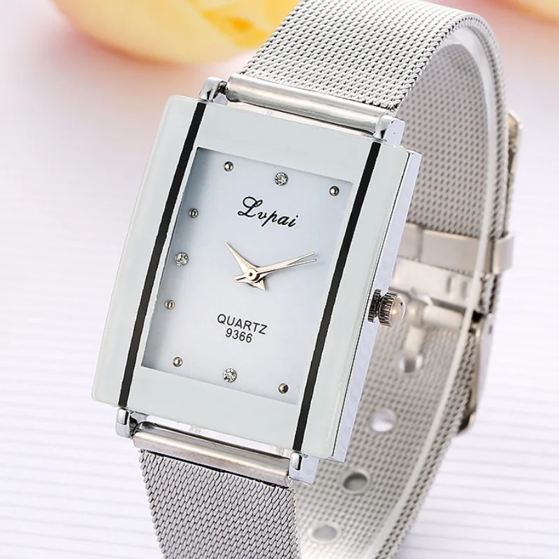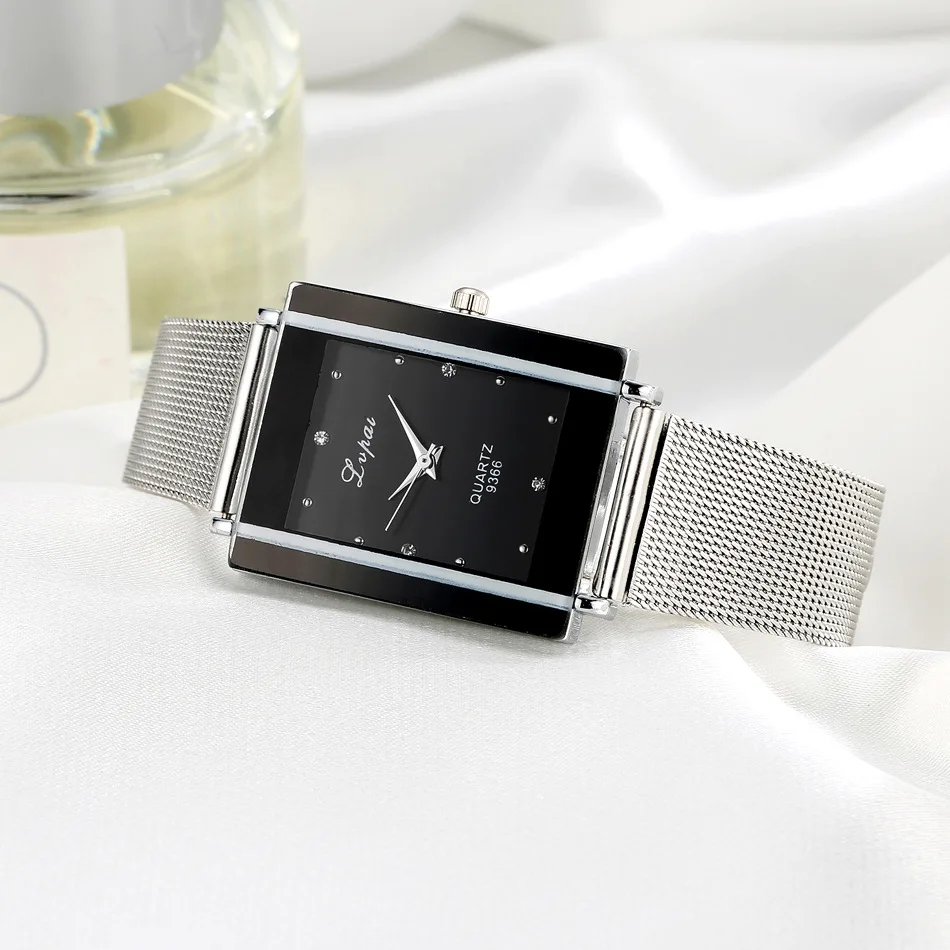 Женские кварцевые часы из нержавеющей стали с прямоугольным циферблатом