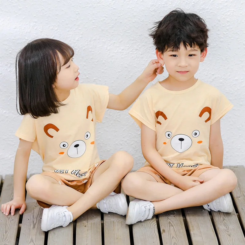Пижама для мальчиков и девочек, хлопковая, с коротким рукавом, из 2...