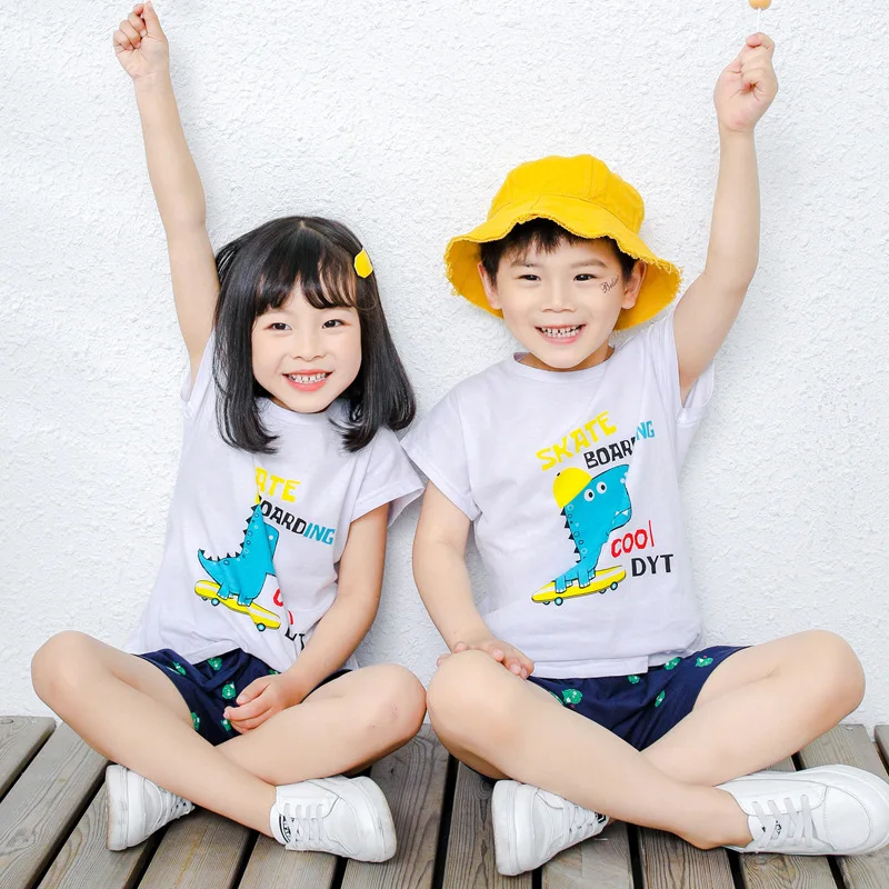 Летняя хлопковая одежда для мальчиков и девочек, комплекты одежды с...