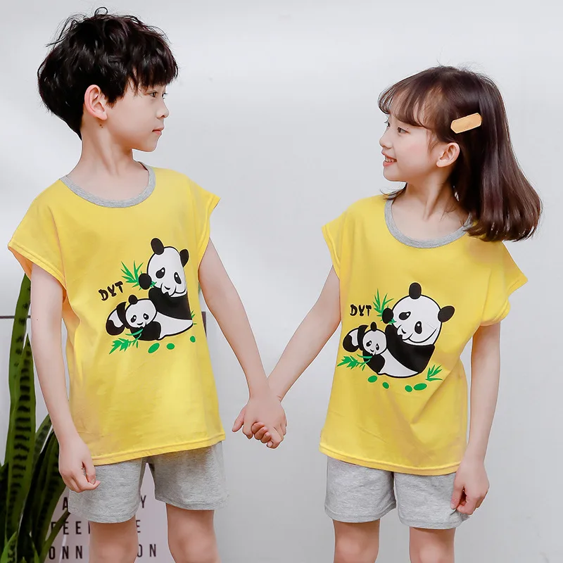 Летний пижамный комплект для мальчиков и девочек, детская одежда с ...