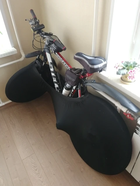 Красивый закрытый чехол для велосипеда. Сложно добраться до велосипеда, но в итоге я смог покрыть колеса велосипеда. Велосипед среднего размера с 28 дюймовыми колесами. Я также не был уверен, могу ли я использовать его с типом вертикальной велосипедной стойки, которую у меня есть, но я попробовал его, согласно прилагаемым фотографиям, и я был в состоянии, но только просто. Я, вероятно, просто использую крышку, пока велосипеды стоят сами, а не с велосипедной подставкой, так как я могу рисковать повредить крышку велосипеда. Хорошее соотношение цены и качества. Я бы порекомендовал.