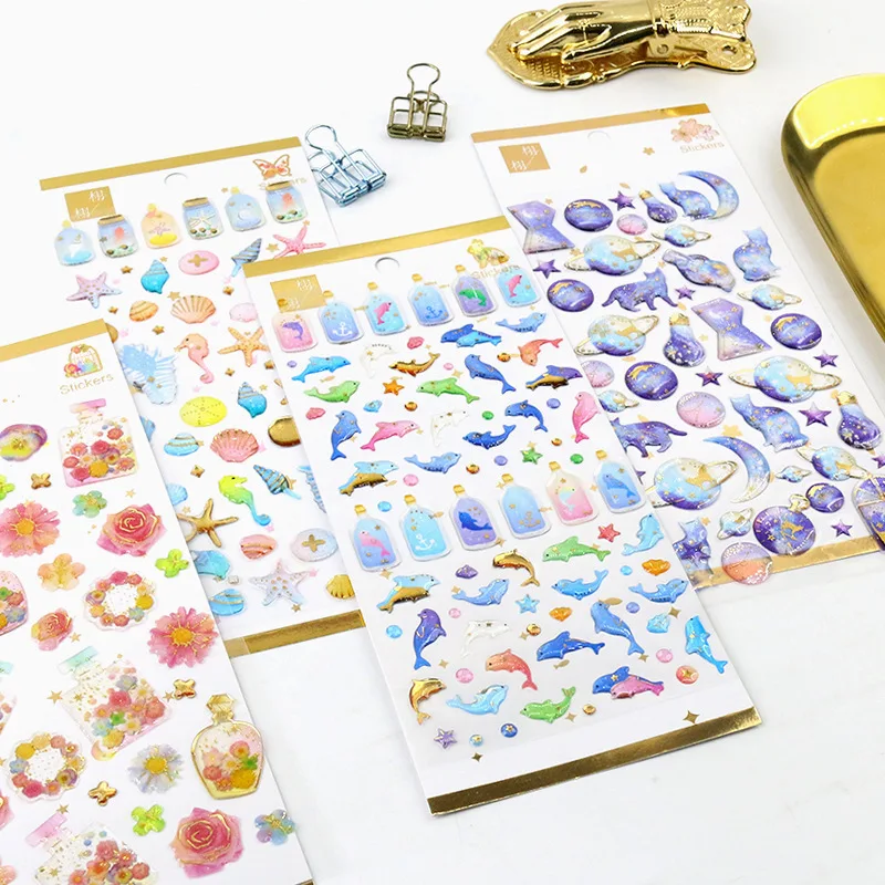 Наклейка в виде капли воды, с изображением фэнтези, звездного неба, бронзовая, трехмерная, Защита окружающей среды, мобильный телефон, материал для дневника