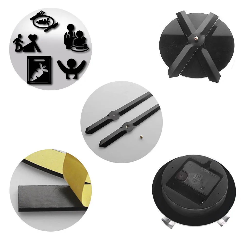 Посылка12 зеркальных акриловых часов2 стрелки часов1 шт. круглый диск1 часовой механизм1 шт. бумажная линейка