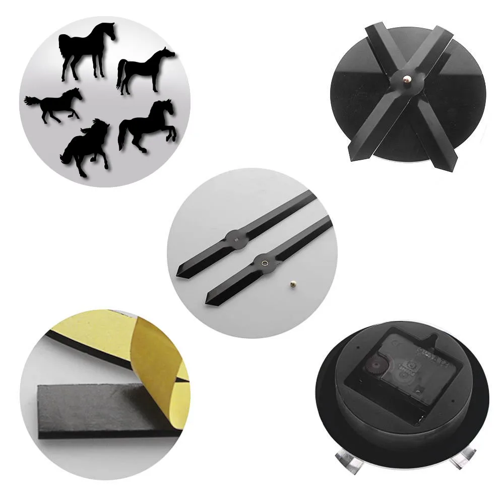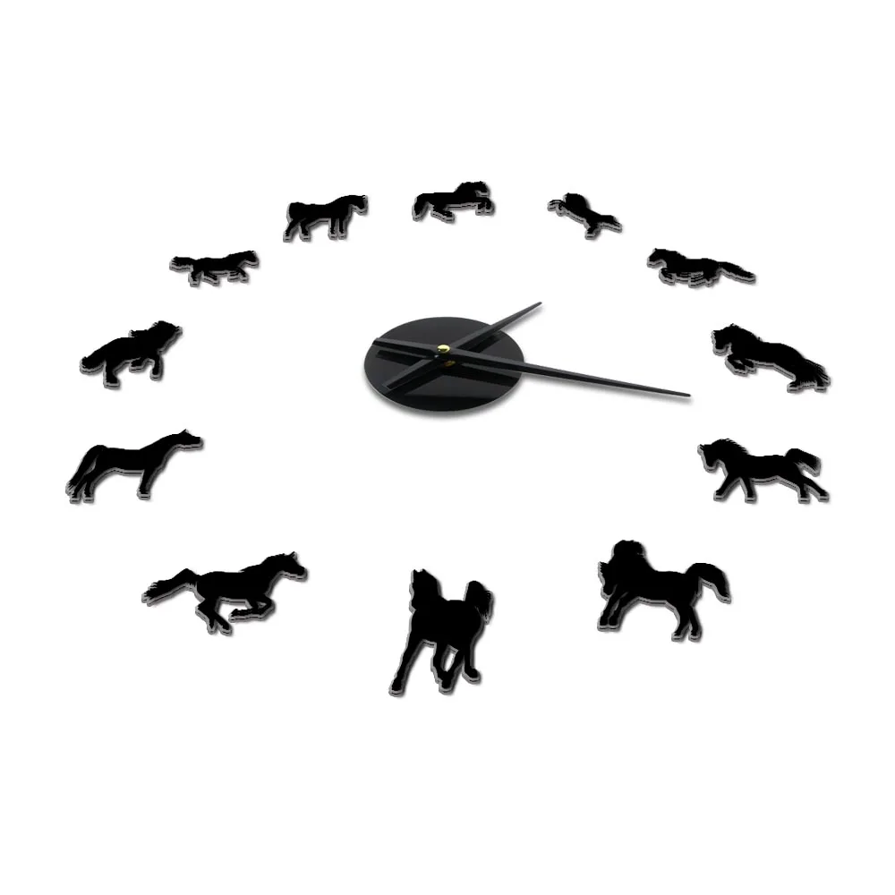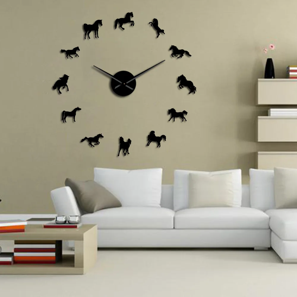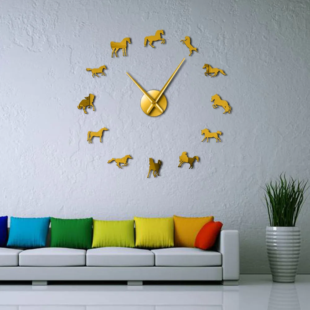 Гигантские бескаркасные настенные часы Running Arabic Horse, акриловые зеркальные настенные наклейки сделай сам, могучий жерельон, домашний декор, настенные часы