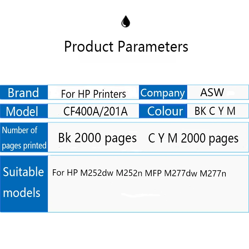 Картридж с тонером ASW CF400A CF401A 402 403A 201A для HP Color LaserJet Pro M252dn M252n MFP M277dw M277n M274n