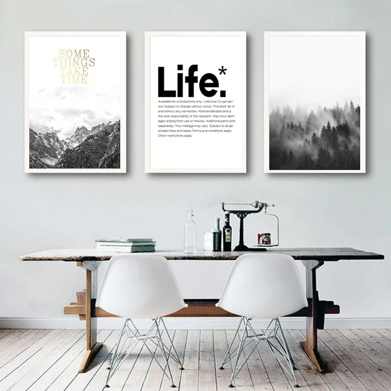 Скандинавские черно-белые летающие плакаты с изображением леса и принтами, настенные картины для гостиной, горная Картина на холсте, украшение