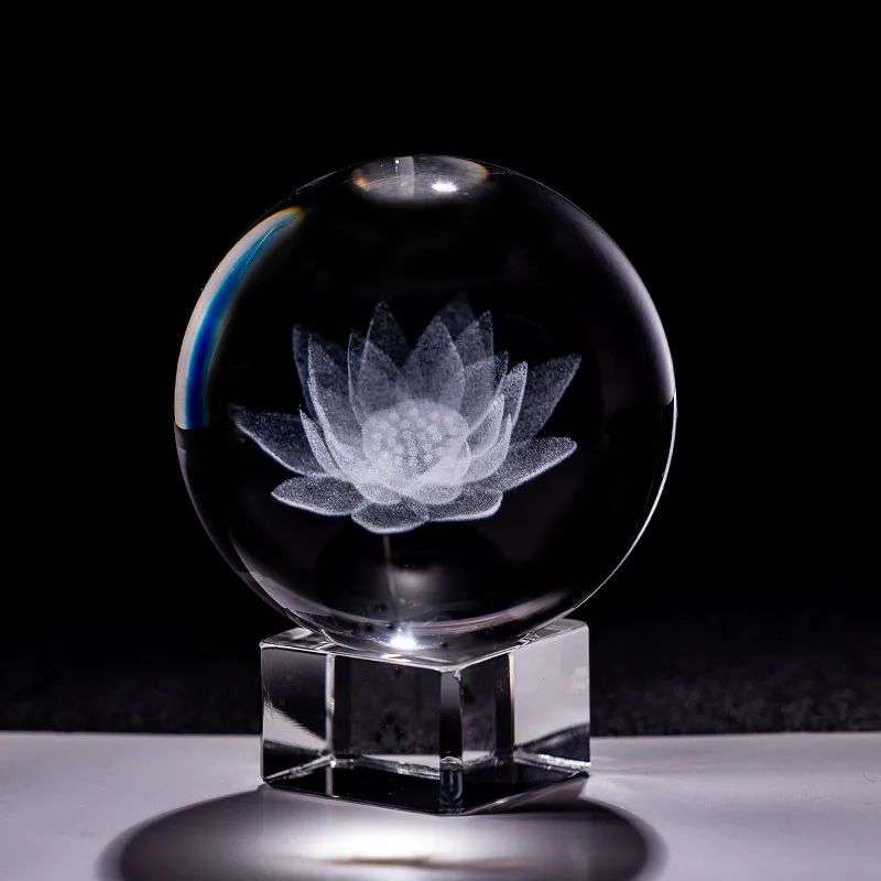 Миниатюрный хрустальный шар в форме лотоса 6 см, 3D фотосфера, домашний декор, цветочное украшение, подарок, фигурки из кристалла