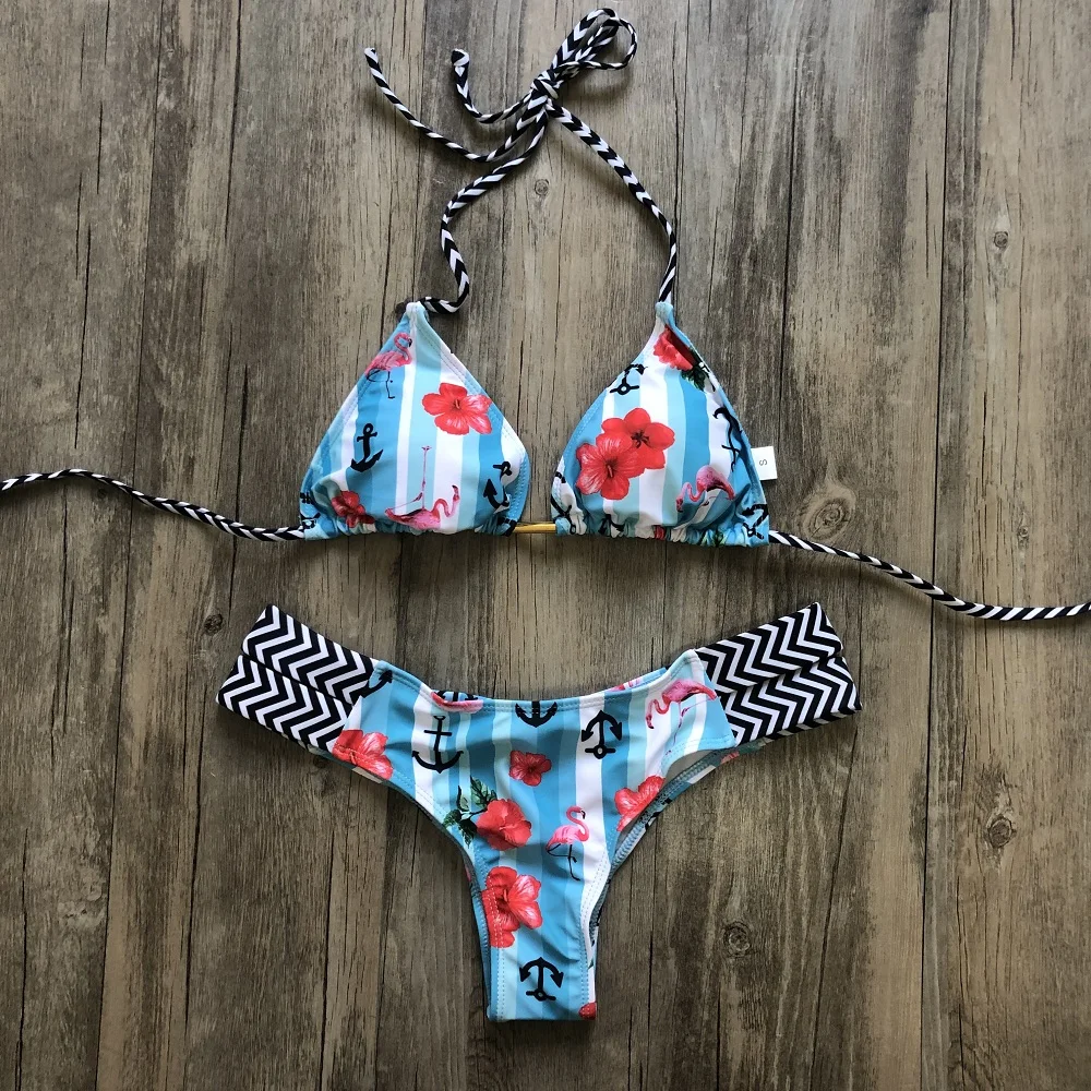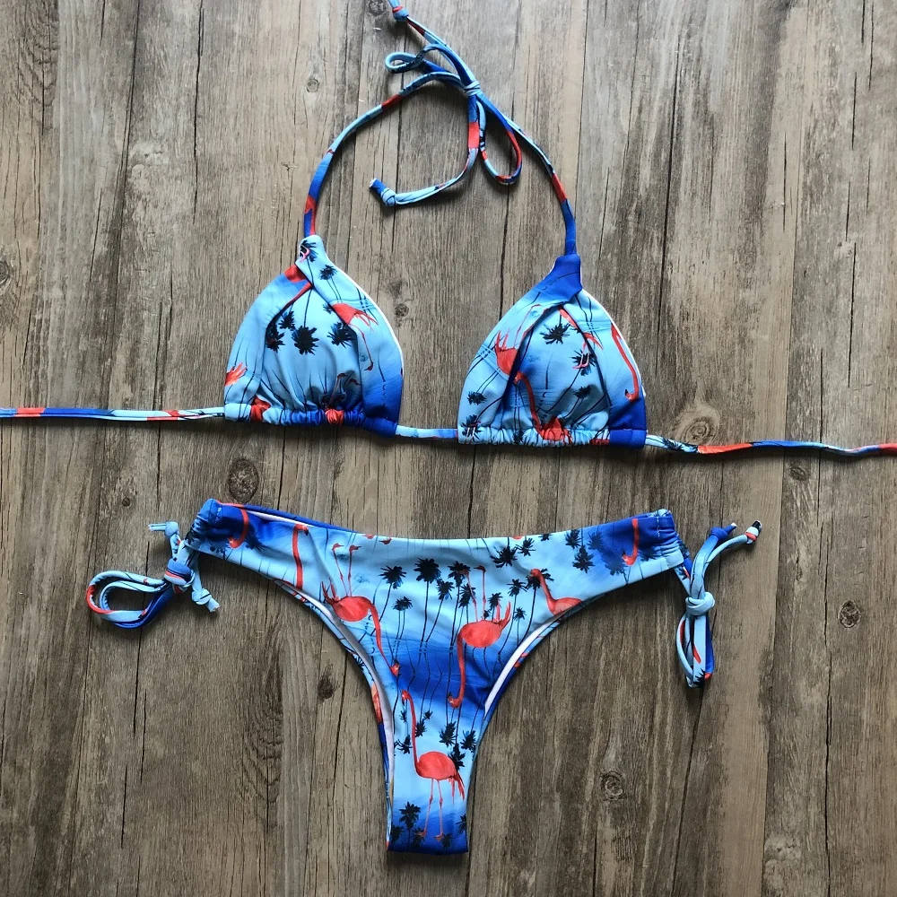 Сексуальный купальник с чашками пуш-ап, Бразильский бикини с тропическим принтом растений, купальник-стринги, мини-купальник, Женский Танга микро бикини, 2020