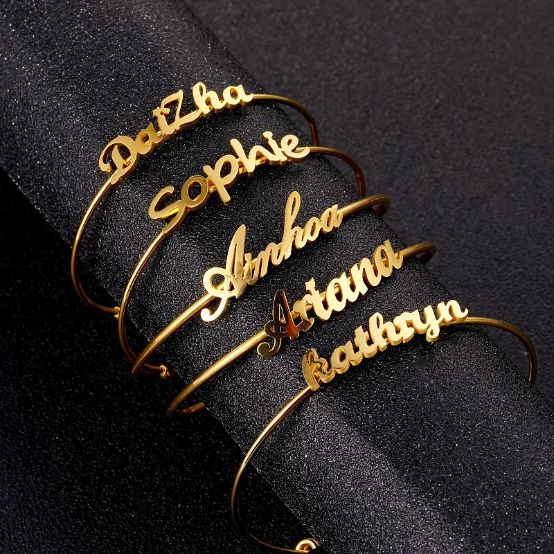 Индивидуальные именные браслеты для женщин и мужчин, золотые подвески из нержавеющей стали, открытый Браслет-манжета и браслет, ювелирные изделия 2020, бижутерия