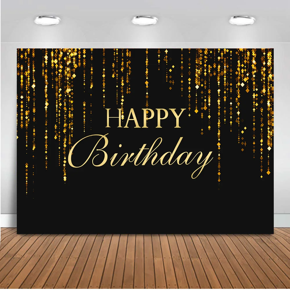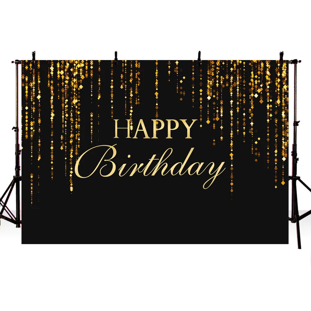 Баннер на день рождения, фотография, фон, золотой, черный, блестящий, золотой, блестящий декор, фон для студийной фотосъемки