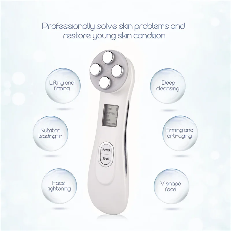 Особенность:Этот косметический прибор оснащен EMS током, технологией электропорации, радиочастотными и светодиодный ными лампами, что делает его многофункциональным, что позволит решить многие проблемы с кожей ems.Первый. Ток EMS может активировать клетки и создать новый коллаген, наконец, сделает вашу кожу более упругой, энергичной и эластичной, улучшит тонкие линии и морщины на поверхности кожи.Второе. Технология электропорации может создать зазор между клетками в течение короткого времени, благодаря чему кожа впитывает больше средств по уходу за кожей.Третий. Радиочастота может облегчить мышечную боль и усталость кожи, ослабить напряжение кожи, уменьшить покраснение, отек и боль, а также противостоять повторному росту акне.Четвертое. Светодиодный светильник имеет шесть режимов вспышки: розовый, желтый, зеленый, синий и розовый. Эти светодиодные лампы могут отбеливать кожу, осветлять тон кожи, способствуют регенерации коллагена, подавляют чрезмерную выработку меланина и сужающиеся поры и т. д.Продукт имеет 5 уровней интенсивности на выбор, вы можете отрегулировать его в соответствии с типом кожи и личными предпочтениями.Этот косметический инструмент не токсичен, побочный эффект, безболезненный, подходит для всех типов кожи. Примечание: Встроенная светодиодный ная лампа не выделяет тепла. Спецификация:Материал: АБСВход: 5 В постоянного тока (500 мА)Мощность: Макс 10 ВтЕмкость аккумулятора: 850 мАч Время зарядки: 3 часаВремя использования: 10 минут/разВремя ожидания: 40 днейРазмер: 17,3*4,2 см (Д * Ш)Вес: 198 гПодходит для женщин Комплектация:Упаковка в пузырчатый пакет, без коробки 1 х косметический инструмент1 х USB кабель1 х Зарядная база1 х Руководство пользователя (на английском языке)