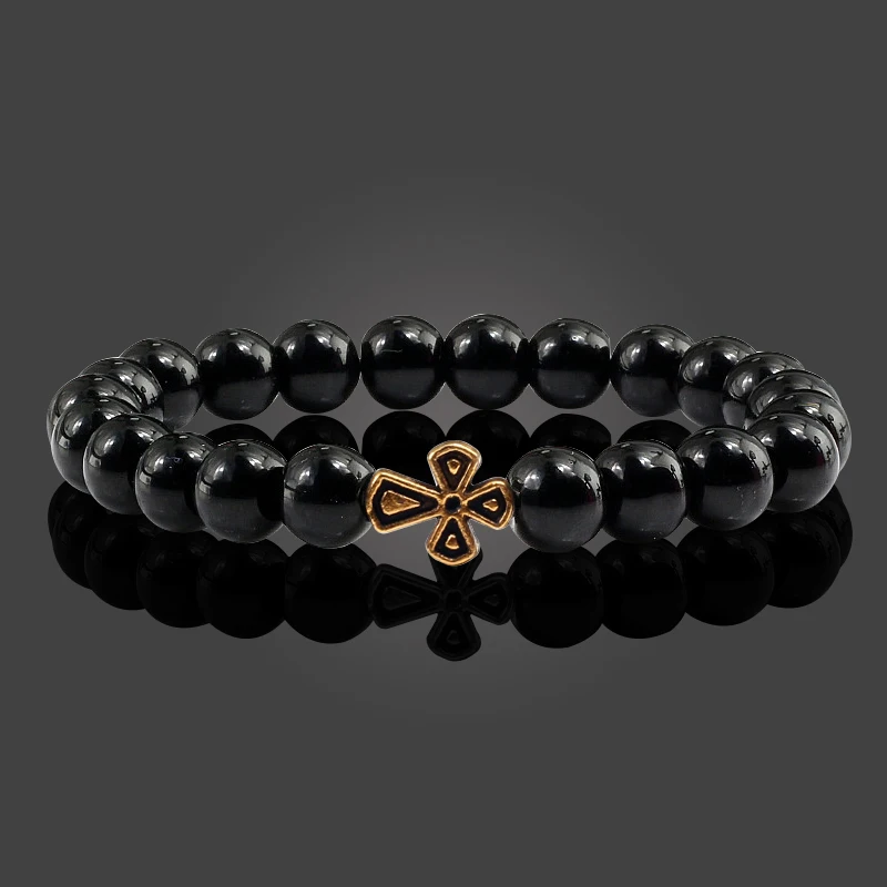 Очаровательный браслет из натурального камня, крест, черная лава, у...
