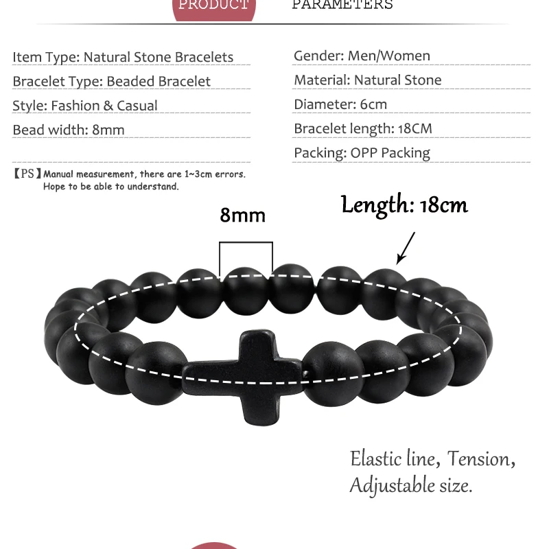 Молитвенный браслет, черный, из лавового Камня Натуральный Камень, Металлический Крест из бисера, браслеты с Иисусом, женские, Йога, христианские украшения, подарки
