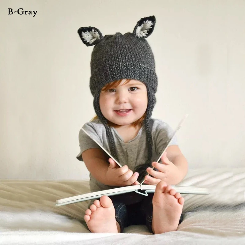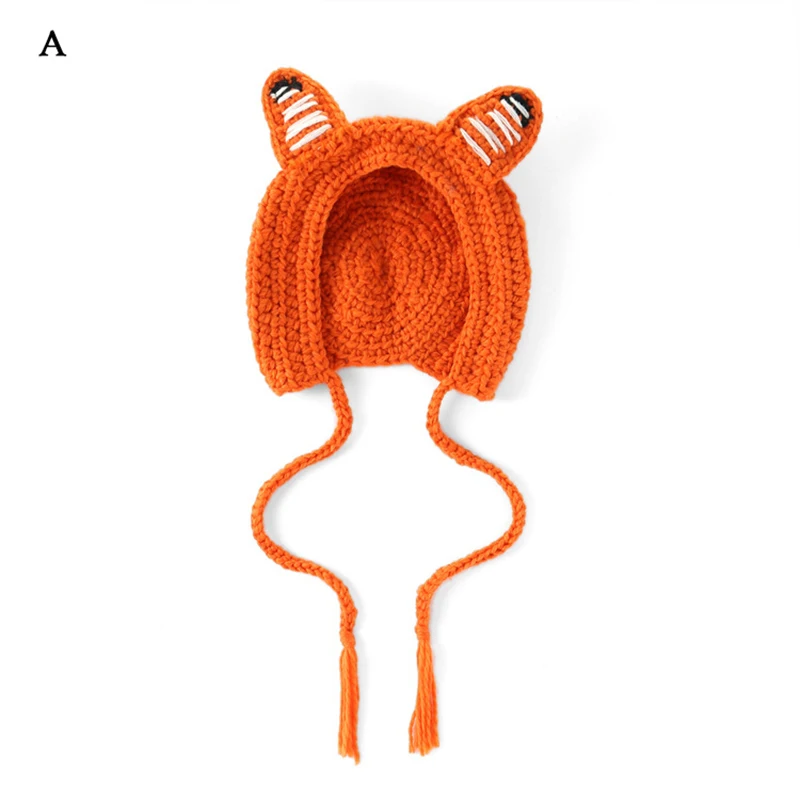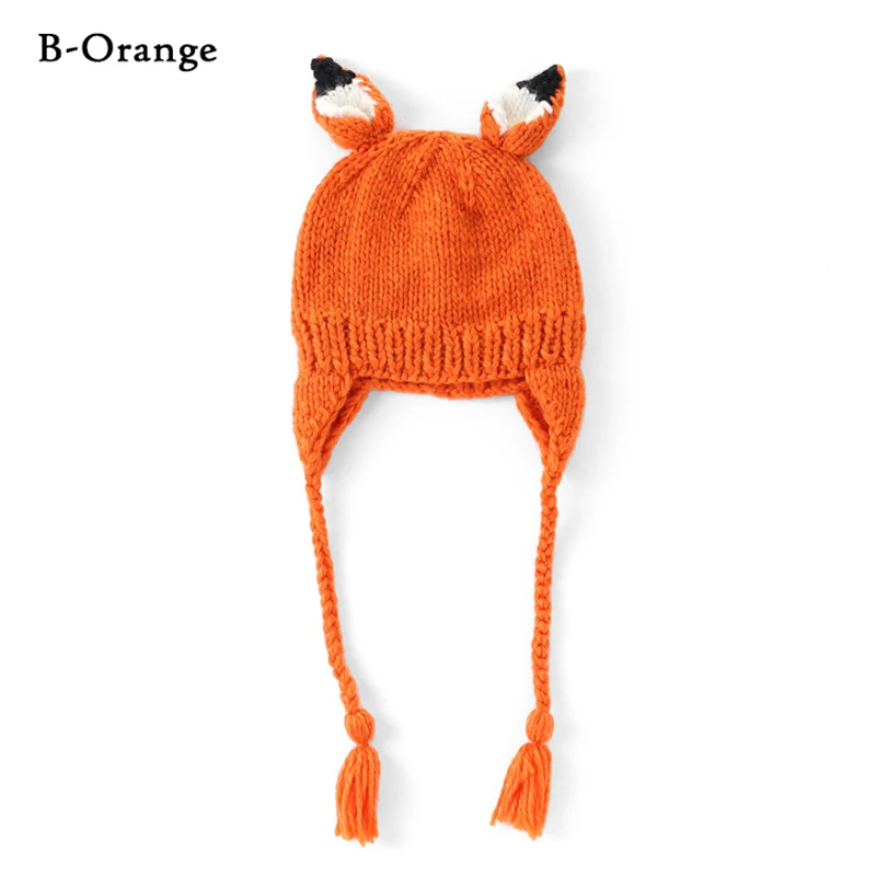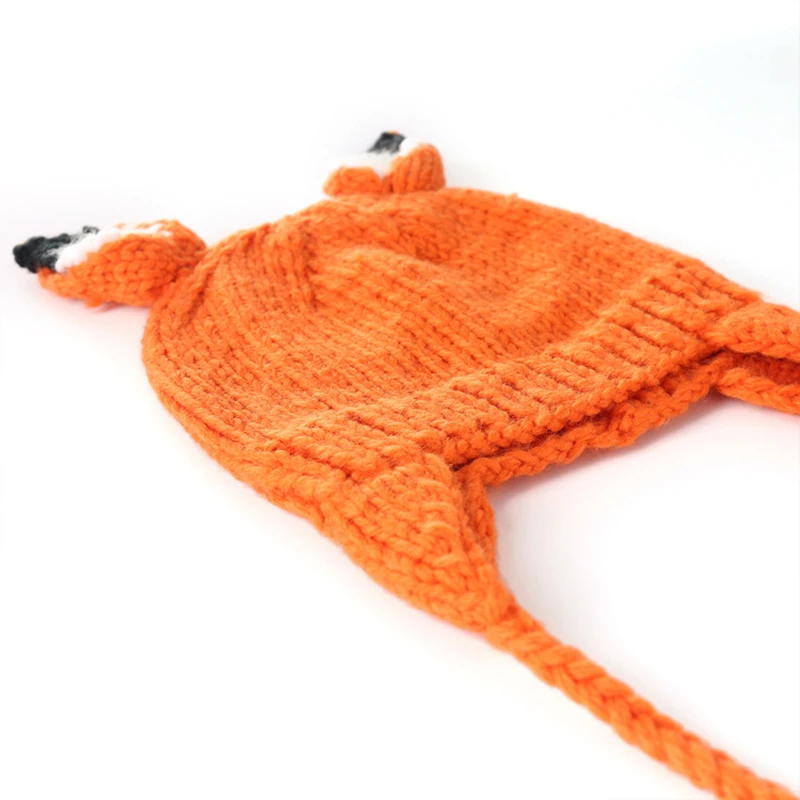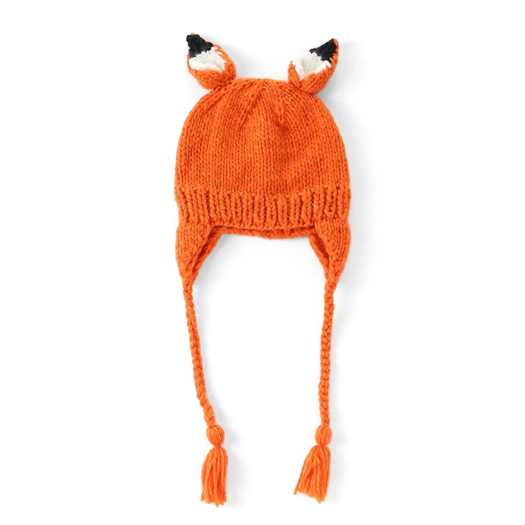 Шапочка детская вязаная в виде лисы, с косами