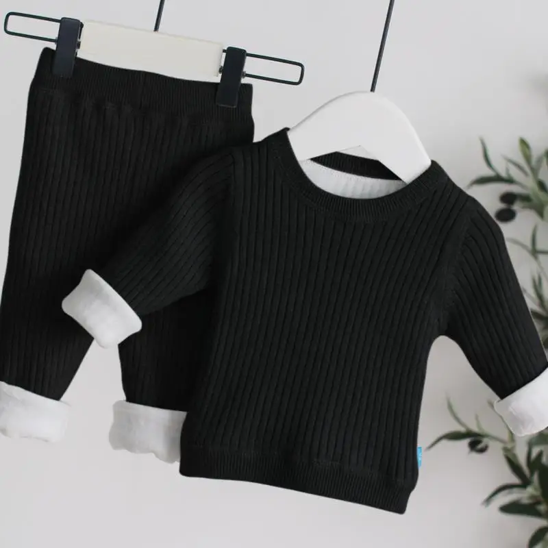 Однотонный комплект детской одежды, 2 шт.компл., утепленная футболка, леггинсы, штаны для малышей на осень и зиму