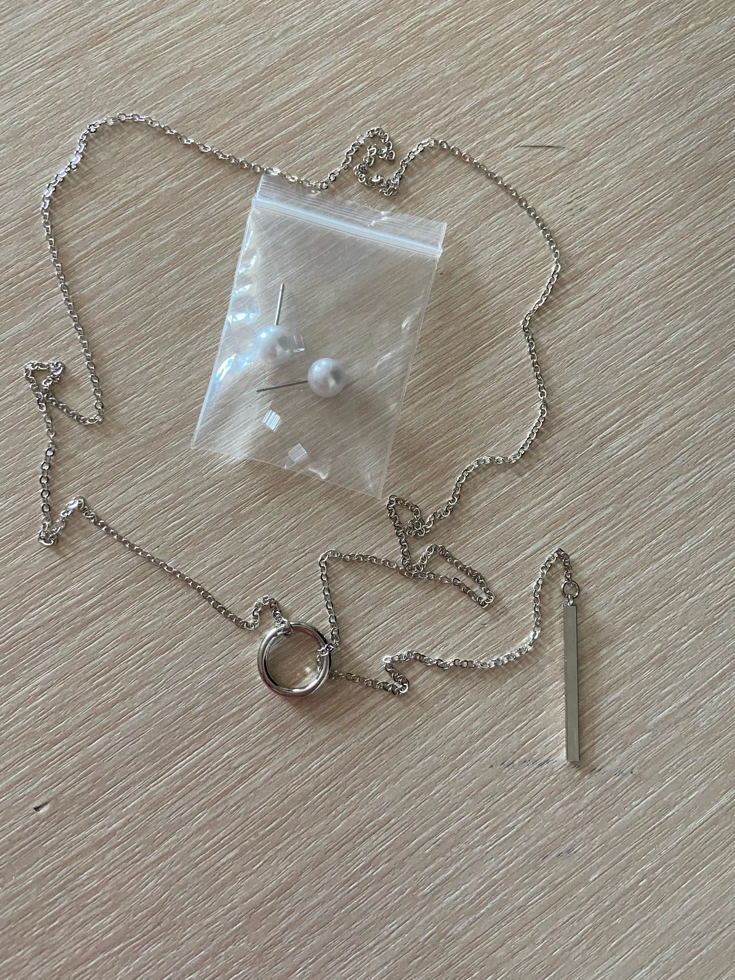 Милая цепочка, продавец положил в подарок сережки под жемчуг. Но цепочка тонкая, возможно, очень быстро порвётся, но за такую цену неплохо