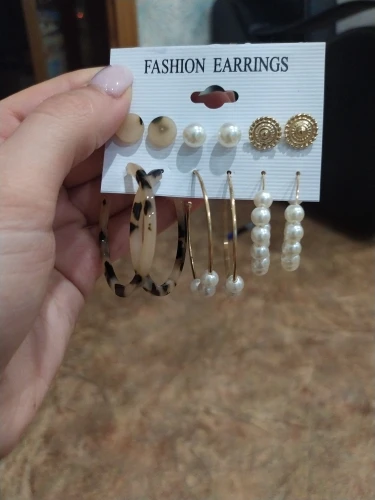На фото серьги кольца выглядят больше. На деле оно по меньше. Так же на фото они выглядят более качественными. В живую выглядят довольно дёшево, но не критично. Носить можно и думаю хорошо будет дополнять образ. В целом мне все понравилось. И ещё на последних сережках жемчуг не закреплён, а ездит как ему хочется. В принципе это и не минут. На средних сережках жемчуг закреплён