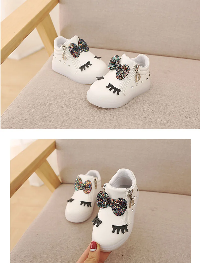 Размеры 21-30; Детские светящиеся кроссовки; Детская обувь принцессы с бантом для девочек; Обувь с подсветкой; Милые детские кроссовки; Светящаяся обувь