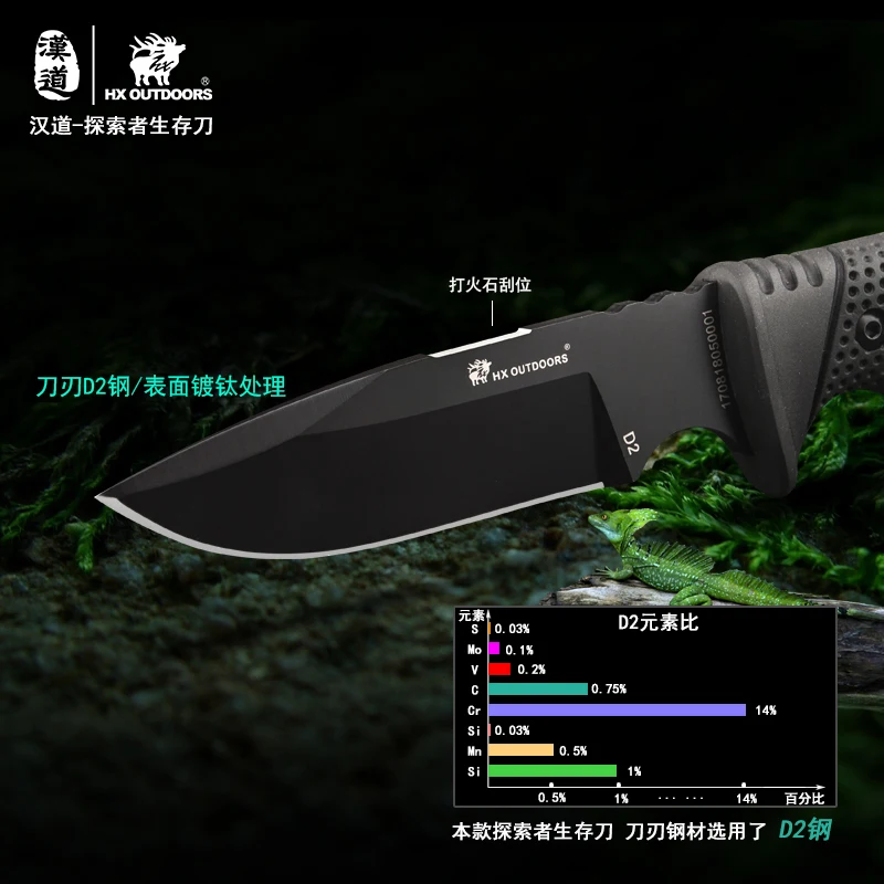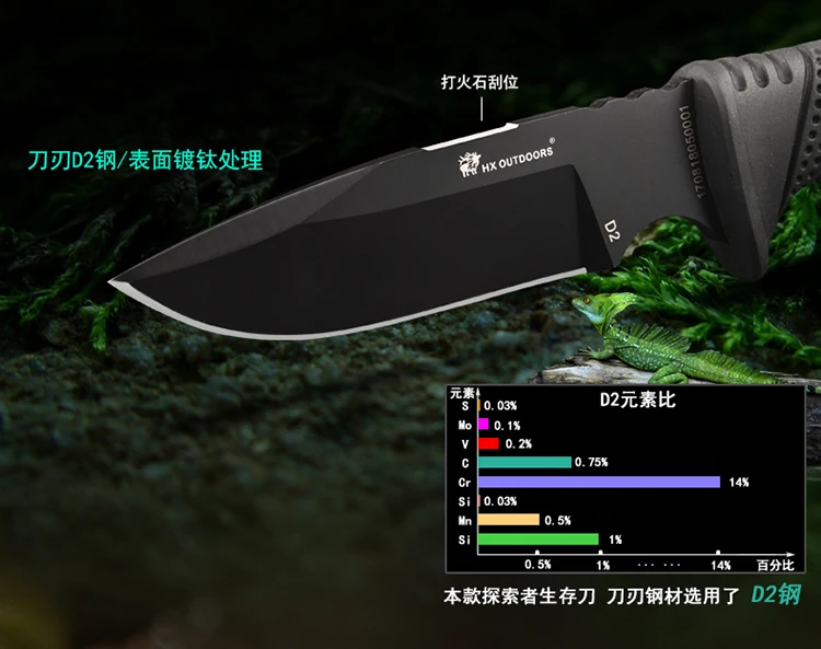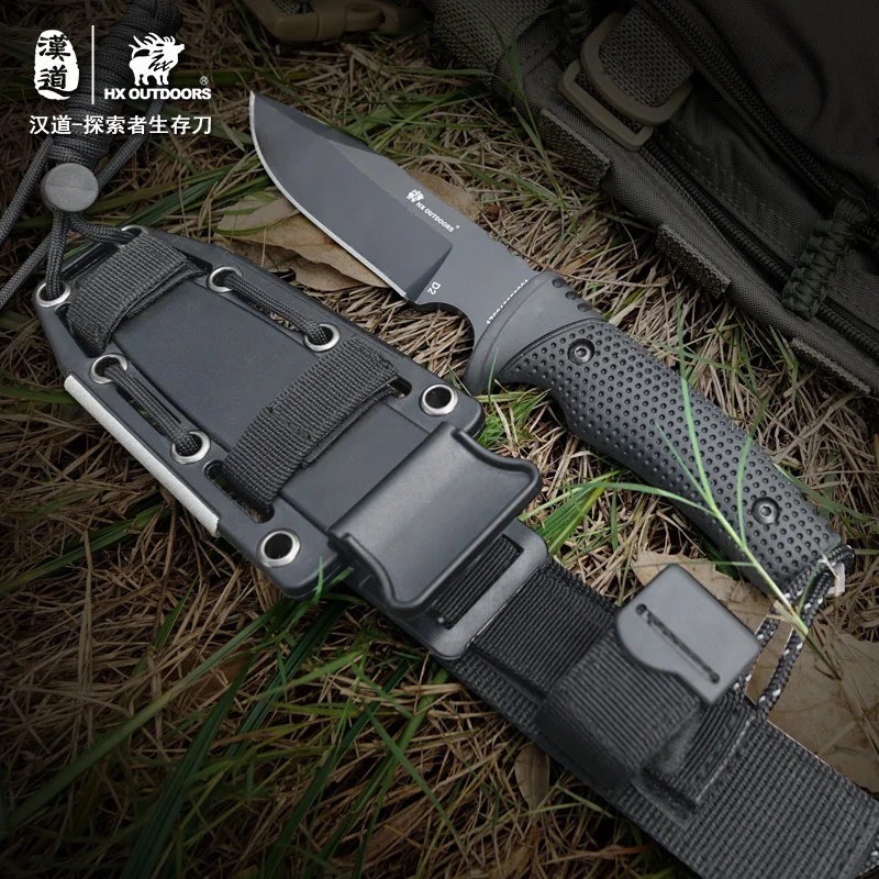 Hx Outdoor 100% D2 стальное лезвие с резиновой ручкой прямой нож охотничий кемпинг выживание спасательные ножи, Прямая поставка