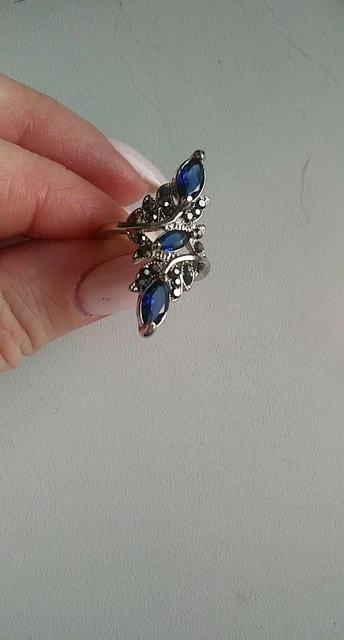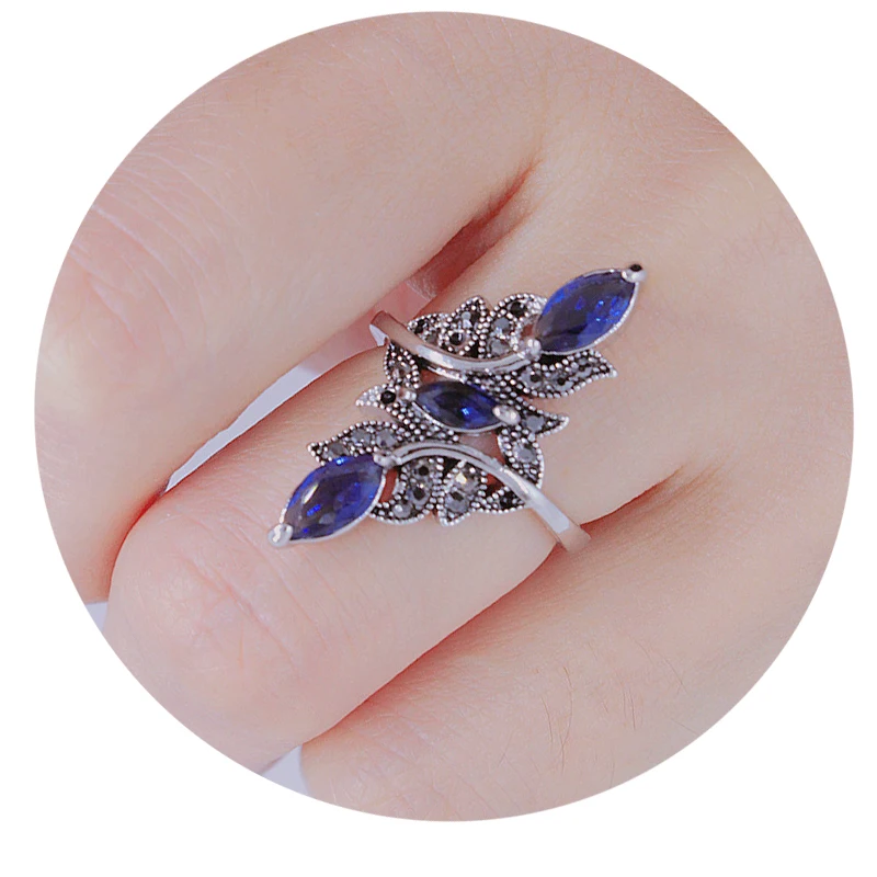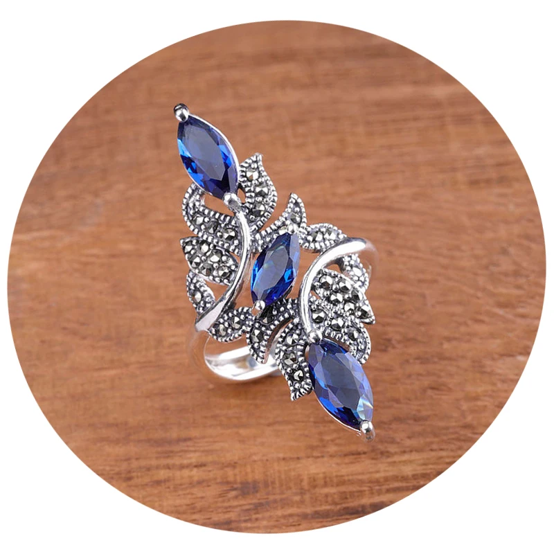 Изысканное кольцо с цветком, простое кольцо с имитацией синего огне...