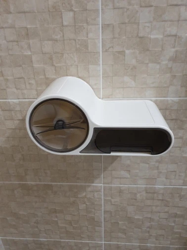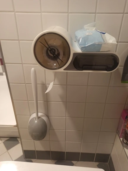 Отличный держатель! Крепится на клеевую площадку с крючками. Держится надежно. Рулон бумаги помещается без проблем, полочка под телефон удобна, но немного скользковата. Ящичек для мелочей немного хлипковат, но свою функцию выполняет (положила туда всякие женские штуки) Доставка в пункт выдачи Пятерочка около 2 недель. Упаковано хорошо, все целое. С продавцом не общалась
