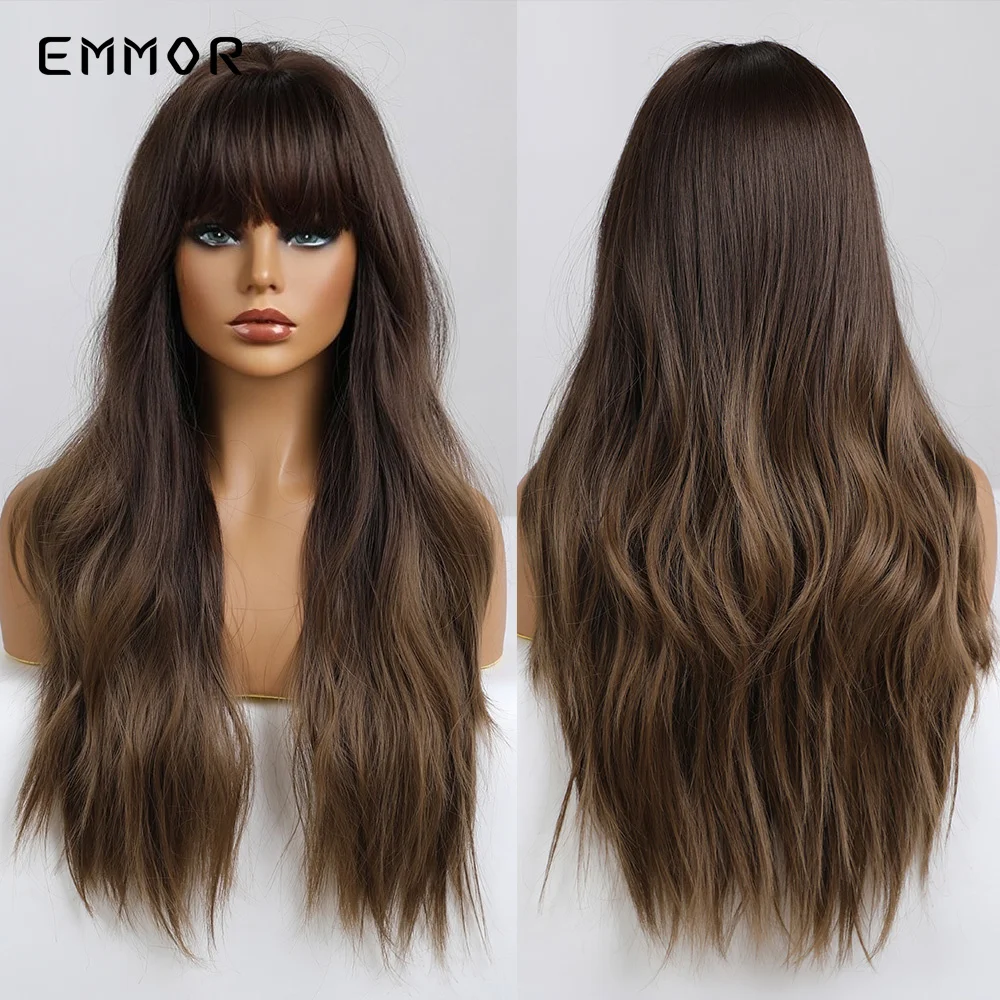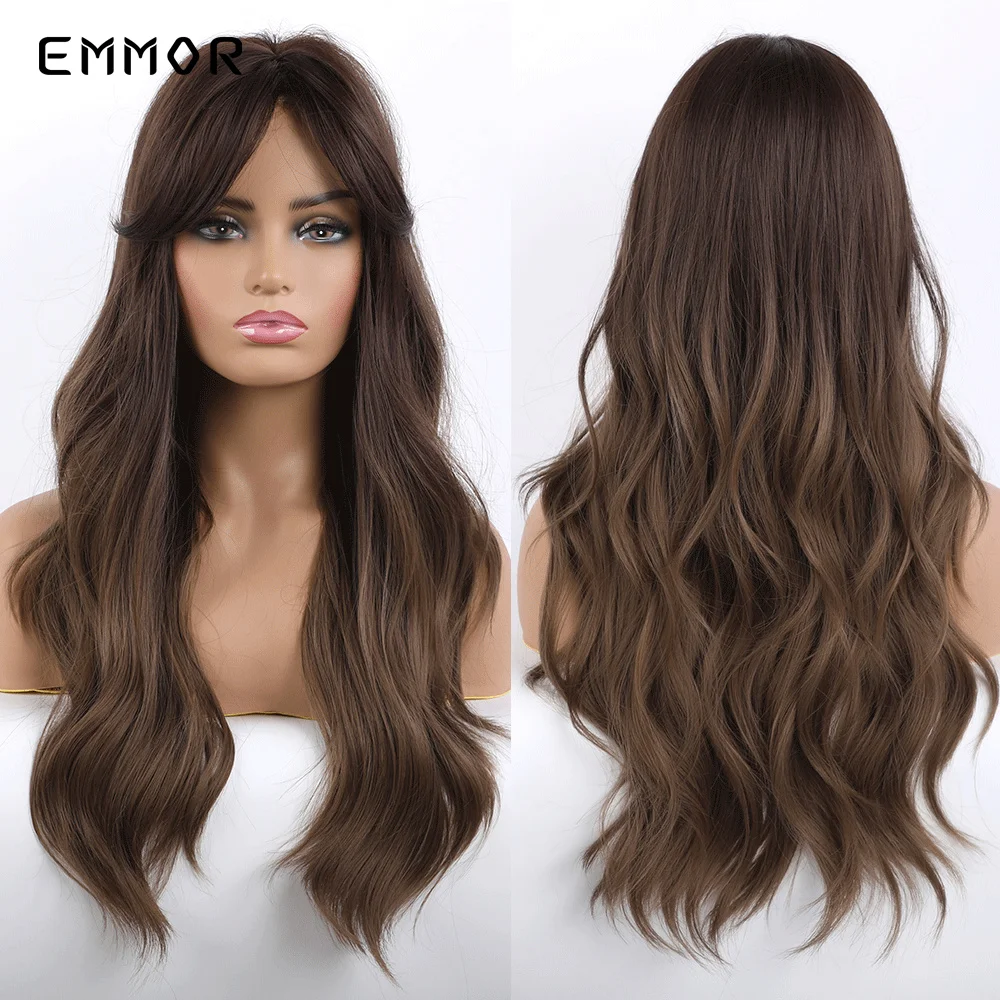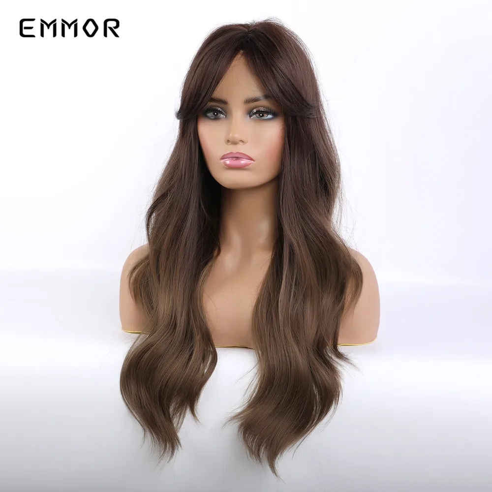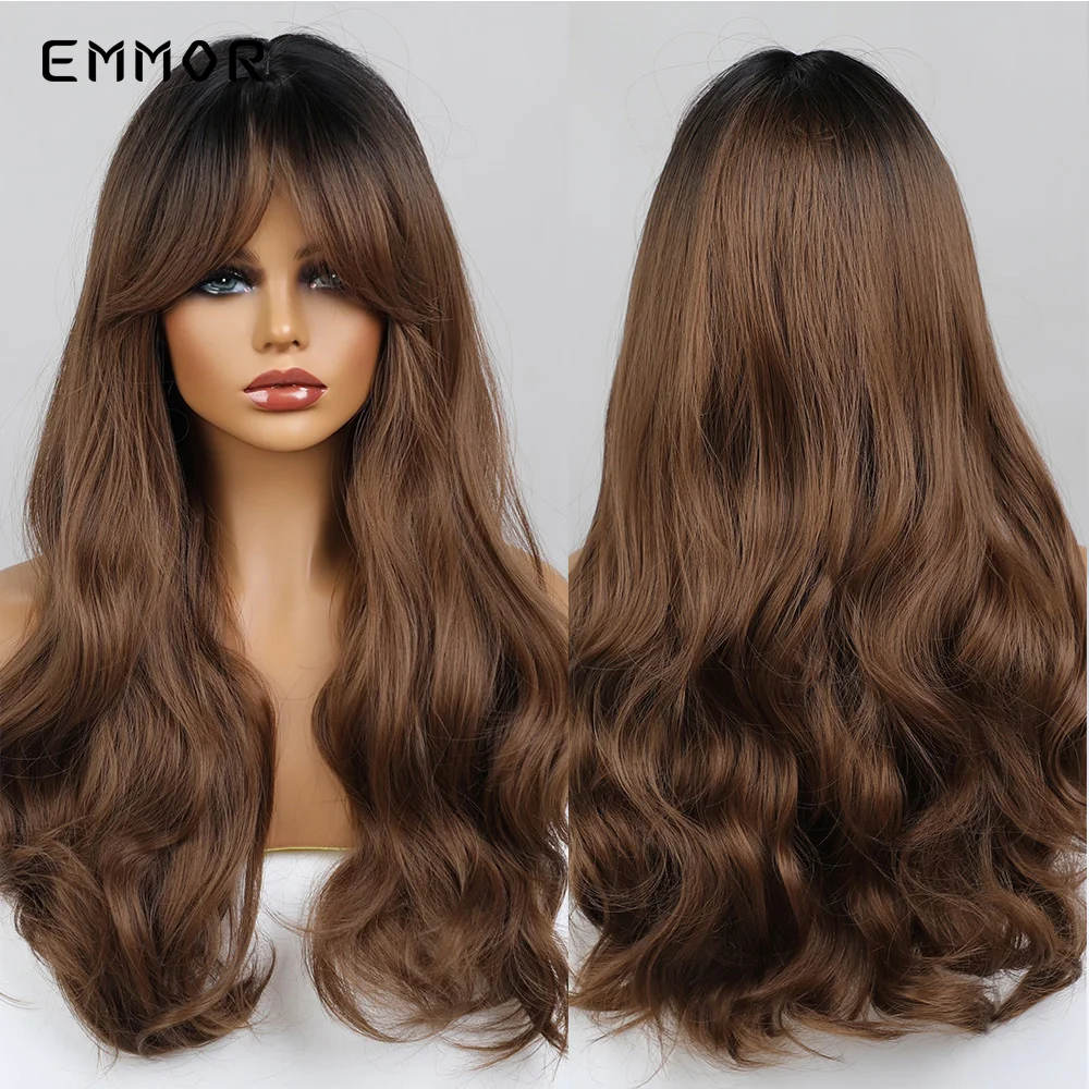 Парик Emmor Омбре из темно-коричневых волн, синтетические волосы с челкой, высокотемпературные волнистые, для косплея, Повседневный, для американских женщин