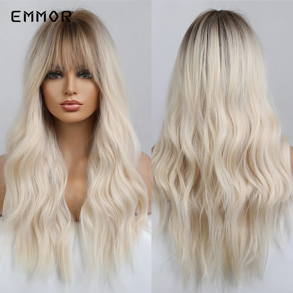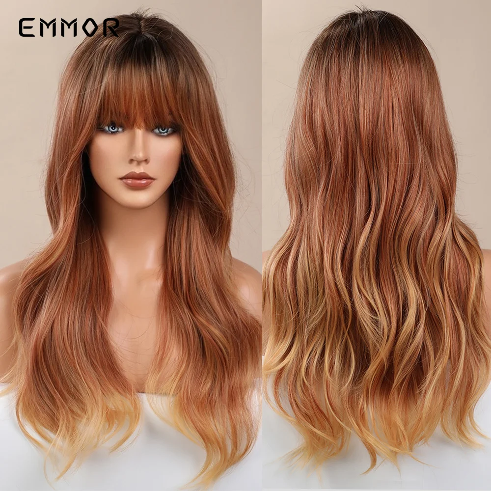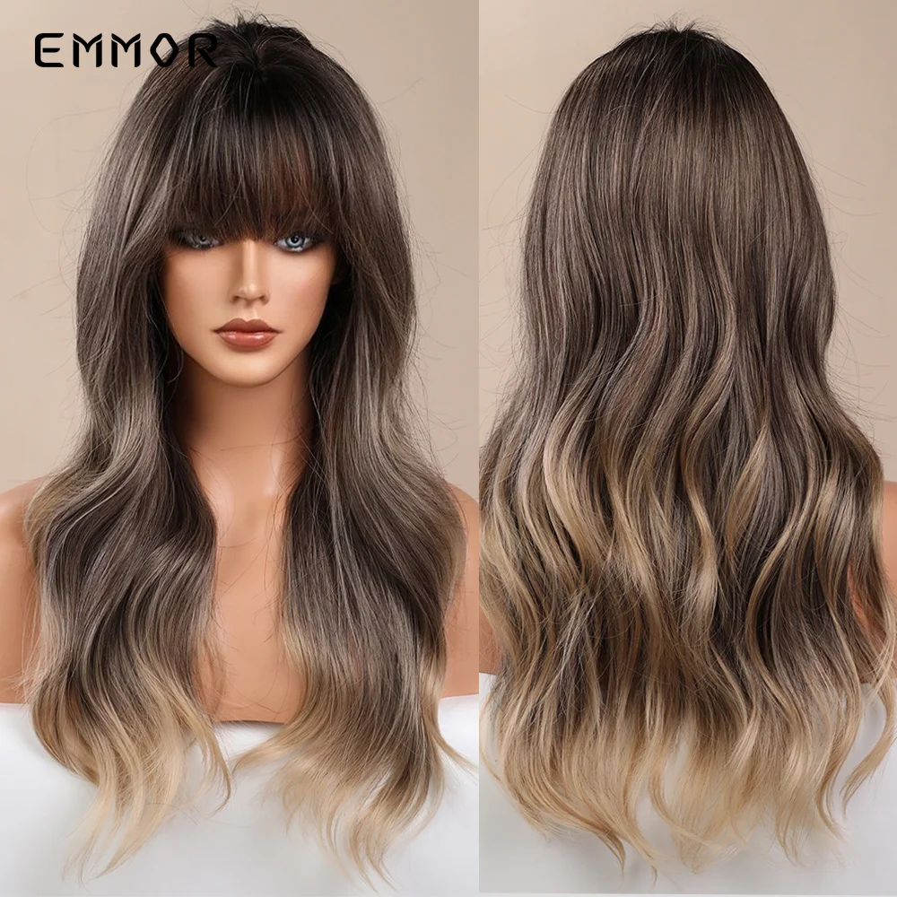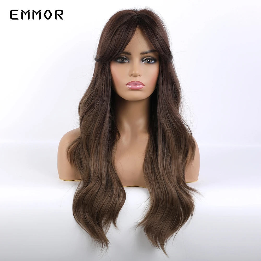Парик Emmor Омбре из темно-коричневых волн, синтетические волосы с челкой, высокотемпературные волнистые, для косплея, Повседневный, для американских женщин