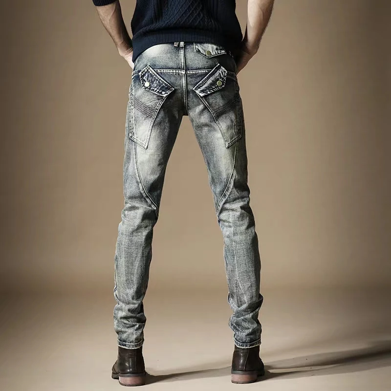 Бесплатная доставка Новый 2020 для мужчин; Однотонные мужские джинсы в стиле ретро прямой металлический ржавчины в стиле хип-хоп с вышивкой в стиле панк старый мотоцикл джинсовые штаны Штаны