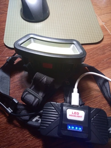 Потребление 1А в час (3 вольта) при максимуме и 0,3 А в час при минимуме (белый или красный свет). Время работы аккумуляторов можете подсчитать сами. Светит довольно ярко рассеянным светом, на расстоянии до 10 - 20 метров всё видно хорошо. Выгляди немножко большим, но не тяжелым. Есть мягкие вставки для головы спереди и сзади. Есть контроль уровня заряда 4 маленьких светодиода синего света постоянно горят. Есть не отключаемый небольшой точечный красный светодиод сзади. Фонарик хороший для повседневной жизни, комнату освещает очень хорошо, подходит для ремонта в темных местах. Используются до 2 аккумуляторов с защитной платой.