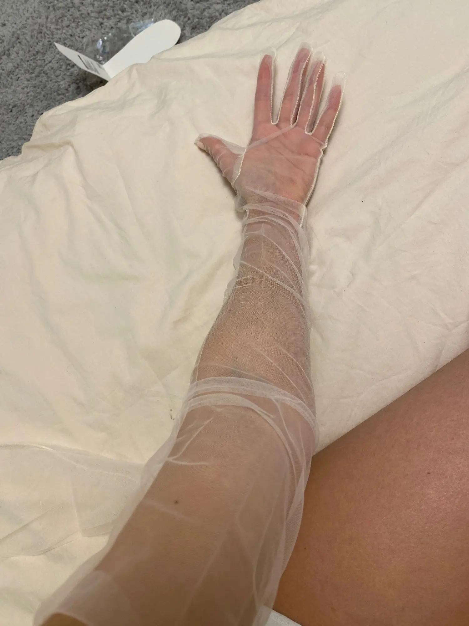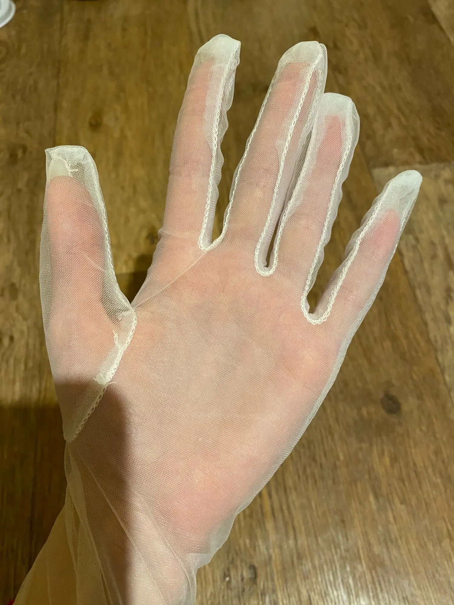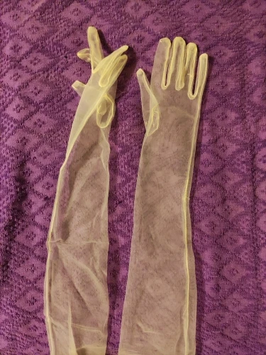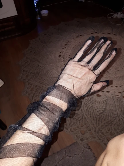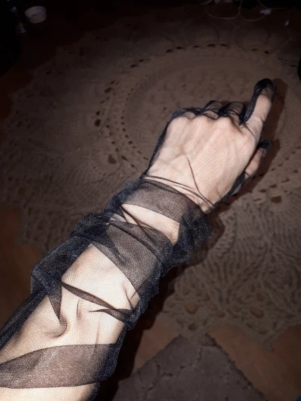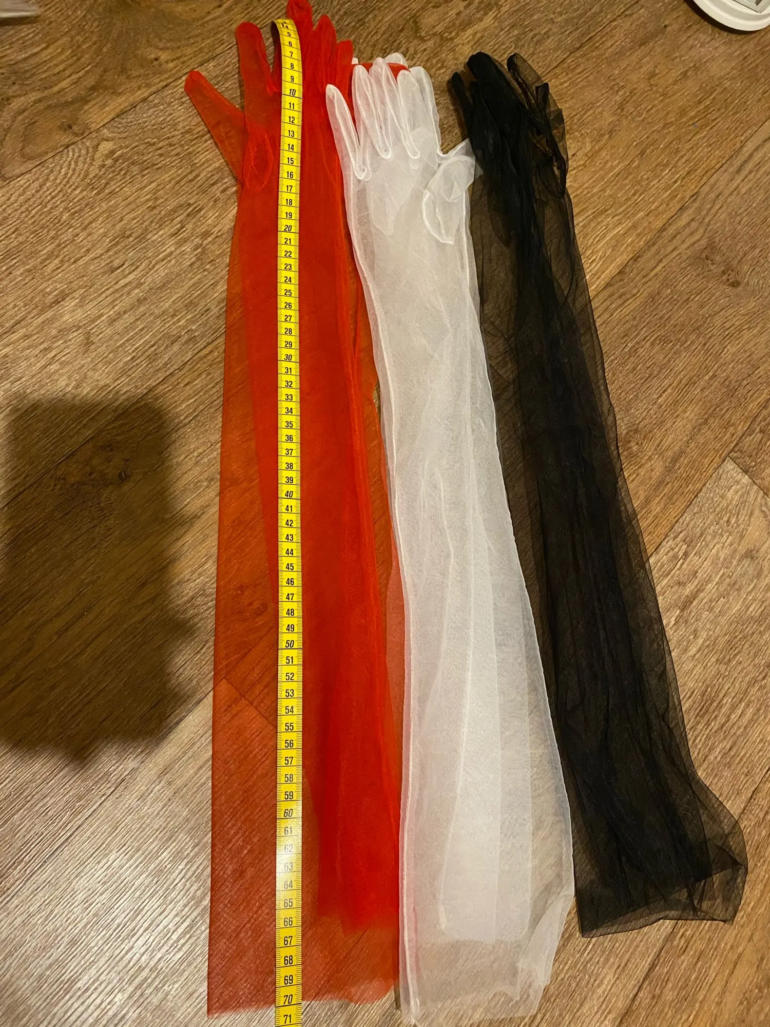 Перчатки приехали меньше, чем за три недели. Для такой цены очень даже неплохое качество! Сеточка мелкая, прозрачная, немного тянется, перчатки очень высокие (до подмышек прямо), но можно их красиво драпировать. Швы, конечно, неидеальные, но думаю просто нужно срезать припуски ближе к строчке и вид станет лучше. Мне пальчики чуть длинноваты. Подойдут на небольшую ручку, иначе очень трудно будет одеть. В целом, все понравилось, спасибо продавцу!