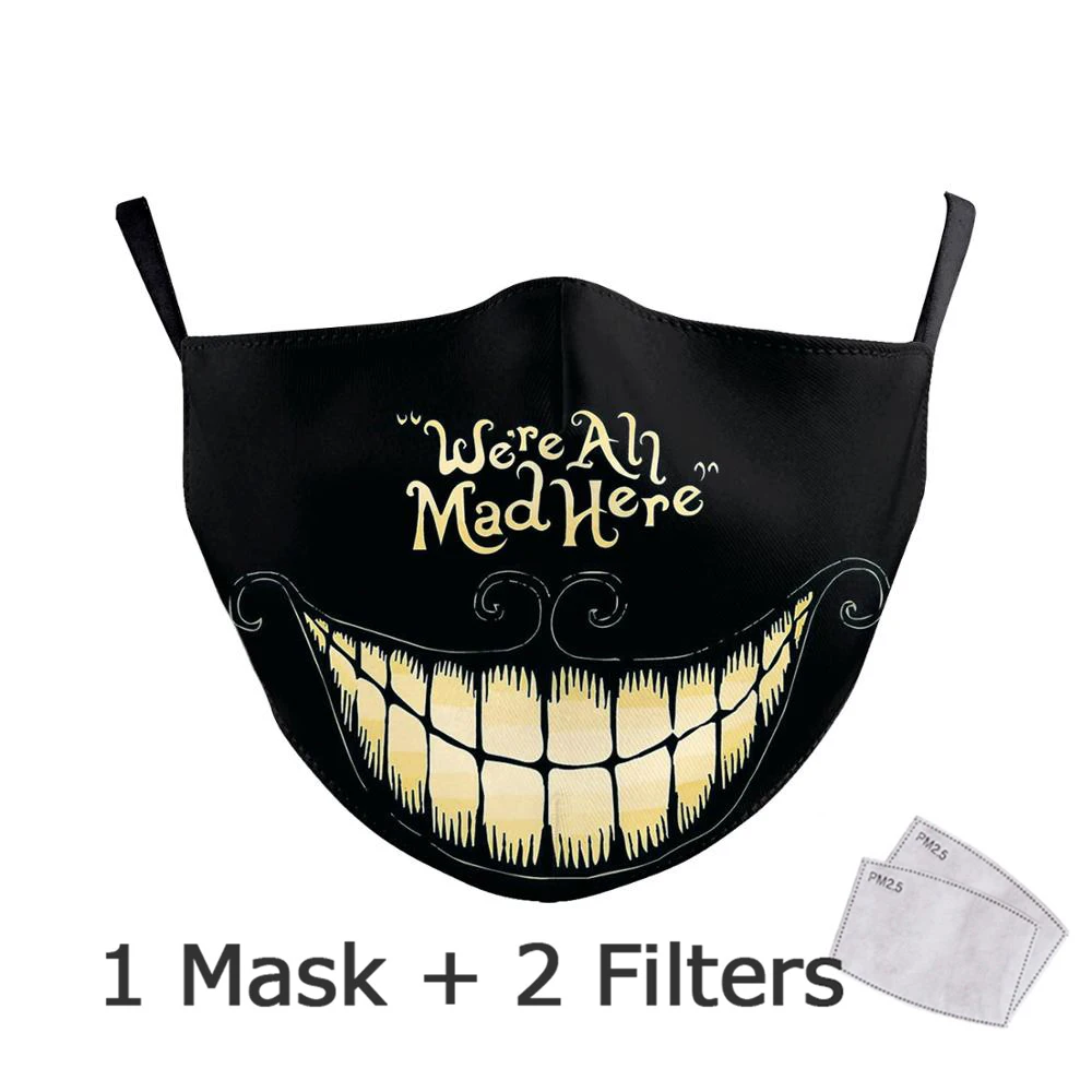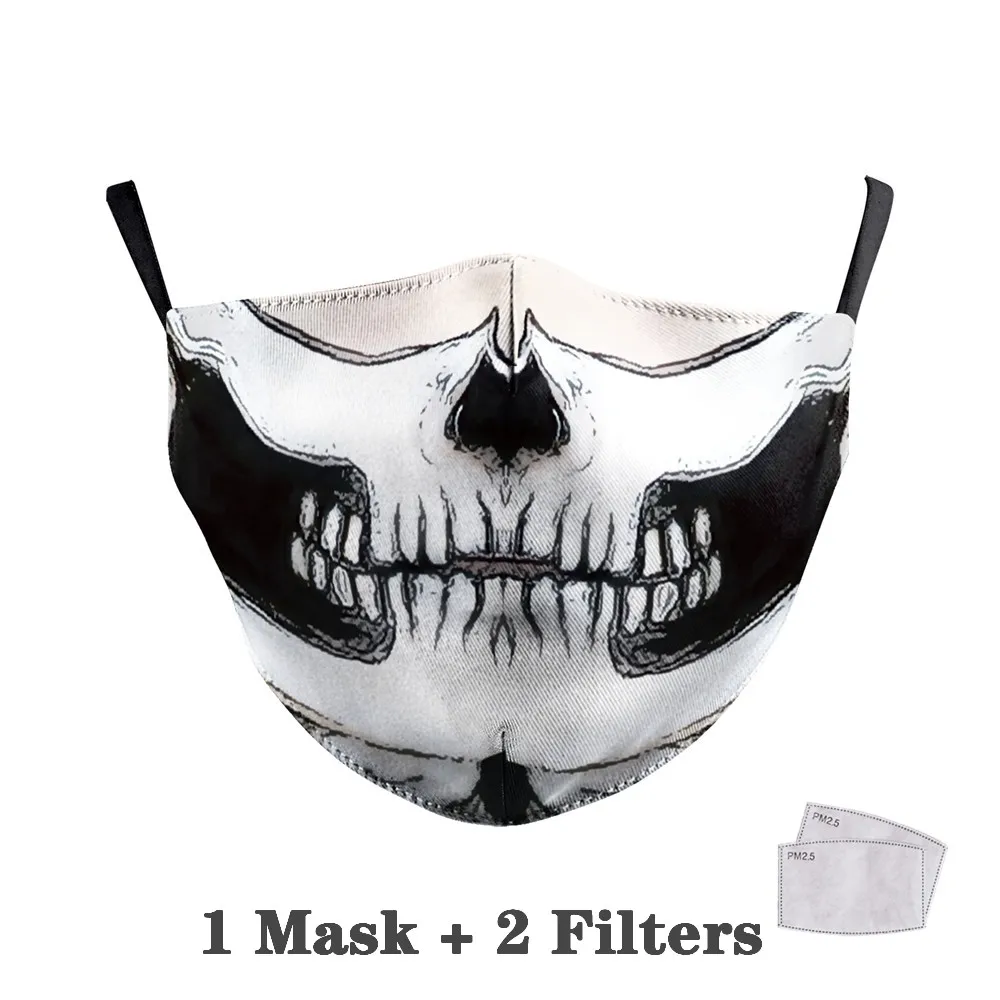 3D печать Pm2.5 клоун череп маска моющаяся и многоразовая маска модный фильтр маска ветрозащитная Муфельная крышка включая 2 фильтра