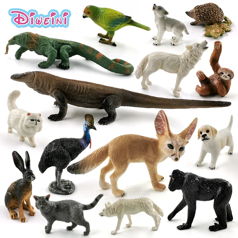 Экшн-фигурка Komodo, игрушка для детей, дракон, волк, собака, кошка, Ленивец, кролик, ящерица, попугай, корморант, лиса, летучая мышь