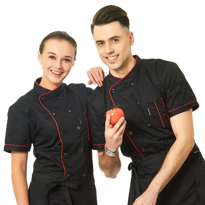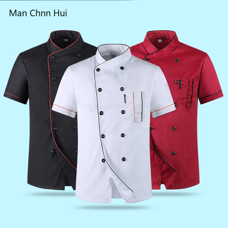 Рубашка с коротким рукавом, красная, унисекс, для кухни, униформа для гостиничного шеф-повара, пекарня, обслуживание, повара, дышащая двубортная куртка шеф-повара