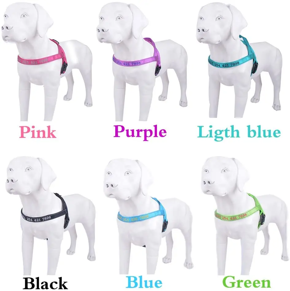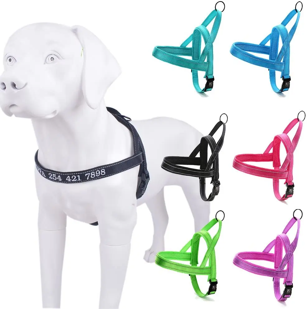 Светоотражающий нейлоновый ошейник для собак, без тяги, ошейник для питомцев Pitbull, мопс, маленький, большой, анти-потери, сбруя для собак, вышитое имя, номер телефона