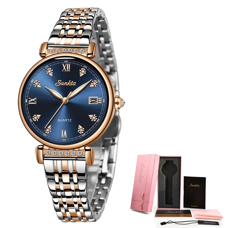 Часы наручные женские простые, модные брендовые Роскошные элегантные полностью стальные, для девушек