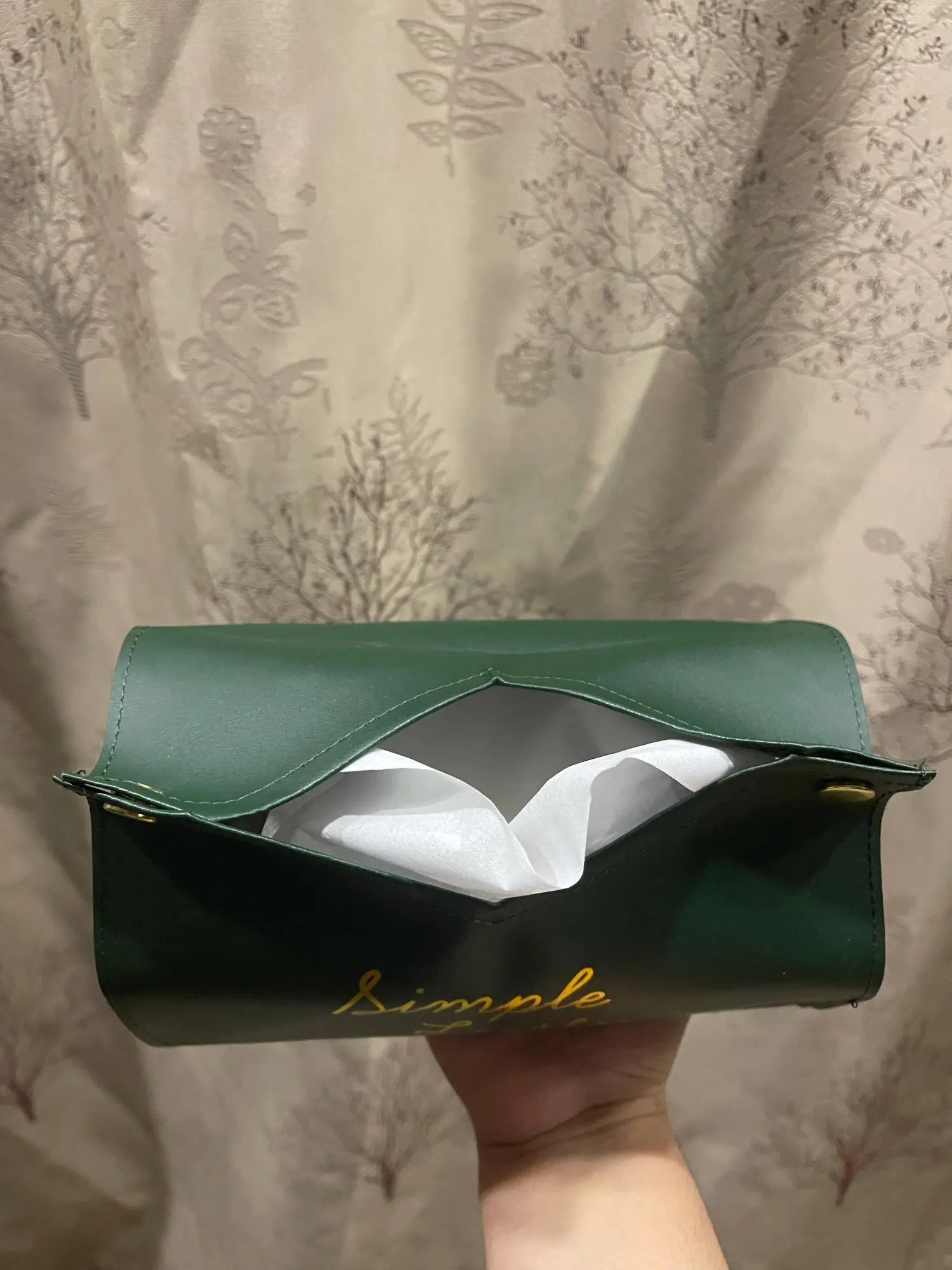 Когда вставляешь в чехол салфетки смотрится хорошо. Это чехол для салфеток